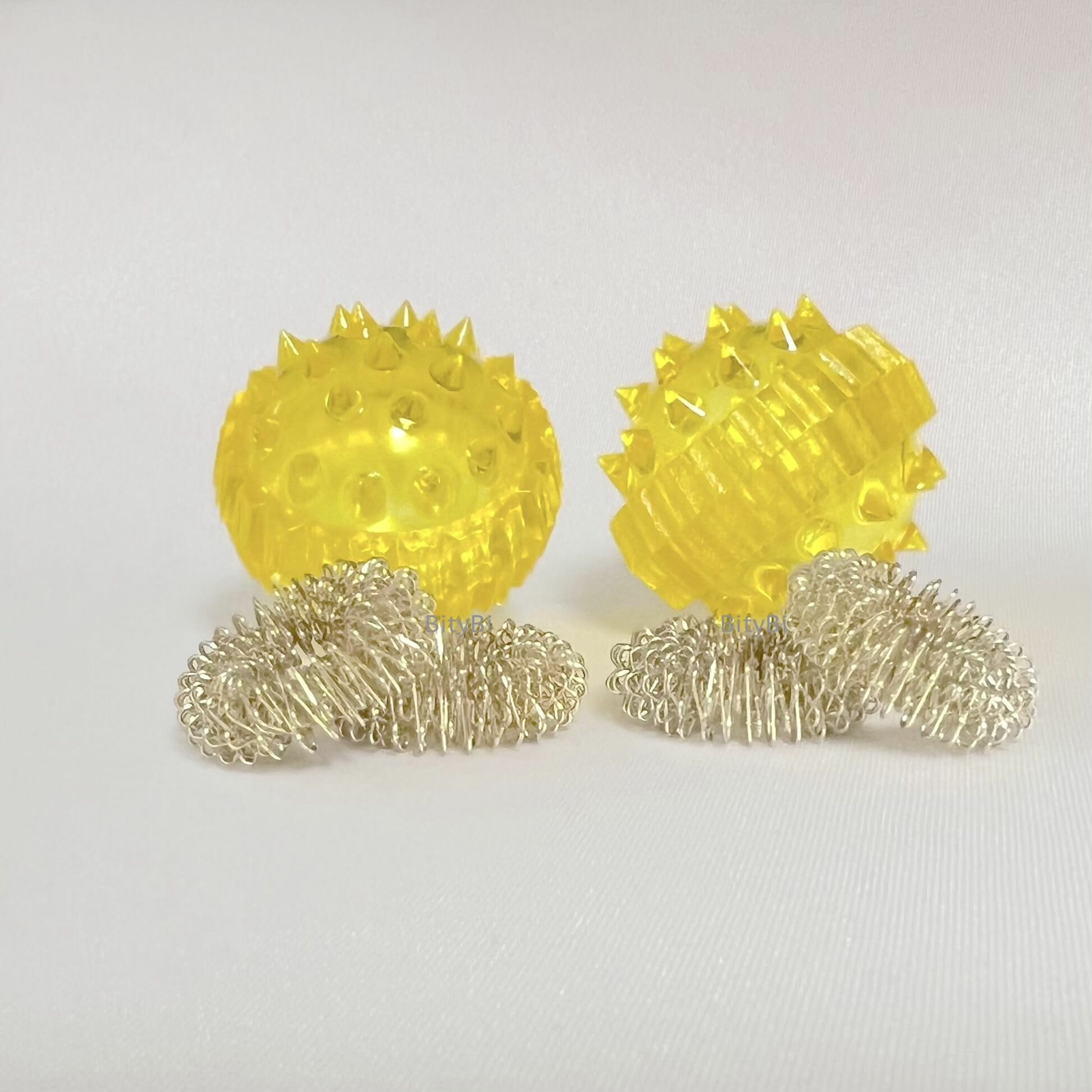 Су-джок массажный шарик с пружинными кольцами, развитие мелкой моторики, комплект 2 шт. цвет желтый, зеленый
