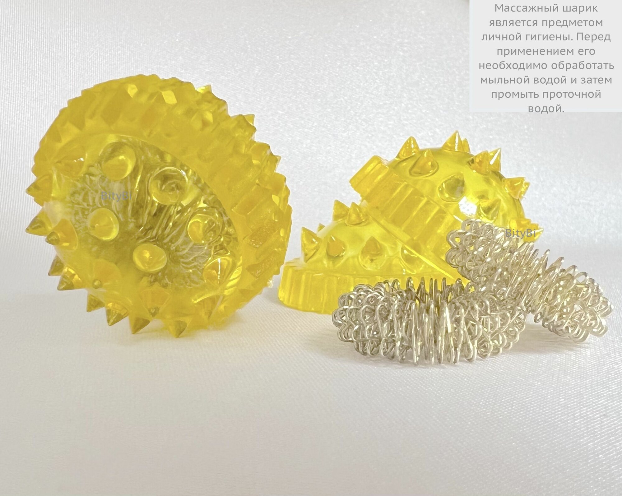Купить Су-джок массажный шарик с пружинными кольцами, развитие мелкой моторики, комплект 2 шт. цвет желтый
