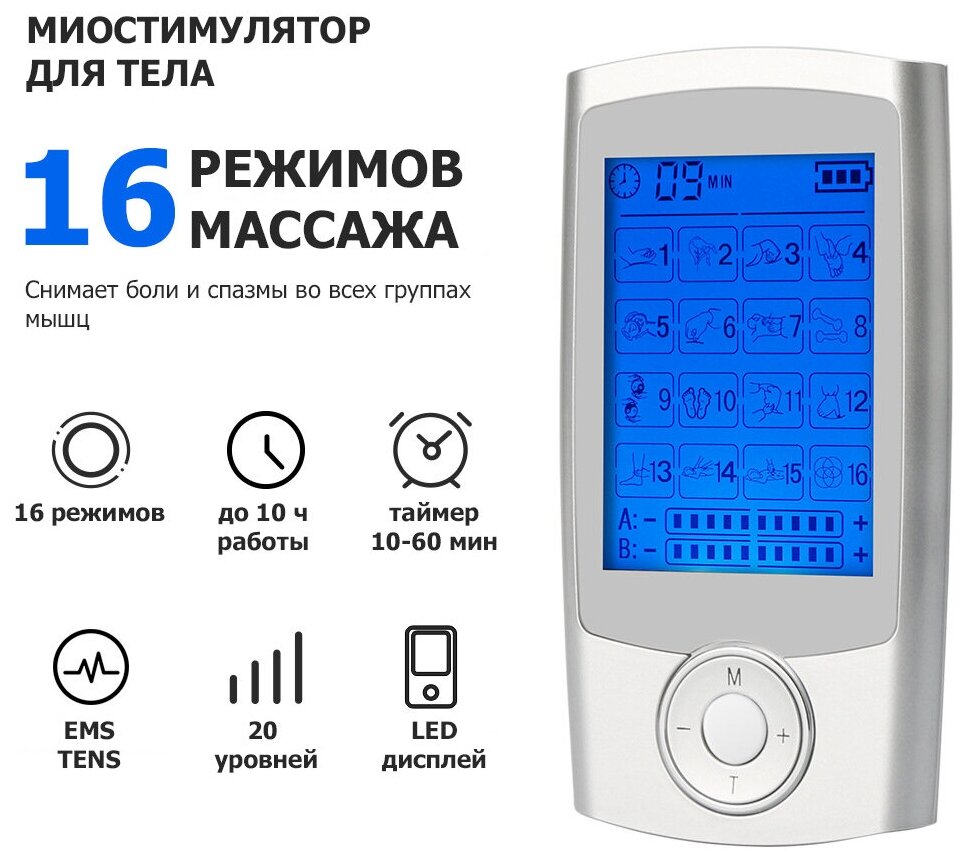 | Дополнительная информация | автоматическое распределение EMS и TENS массажа в зависимости от программы |