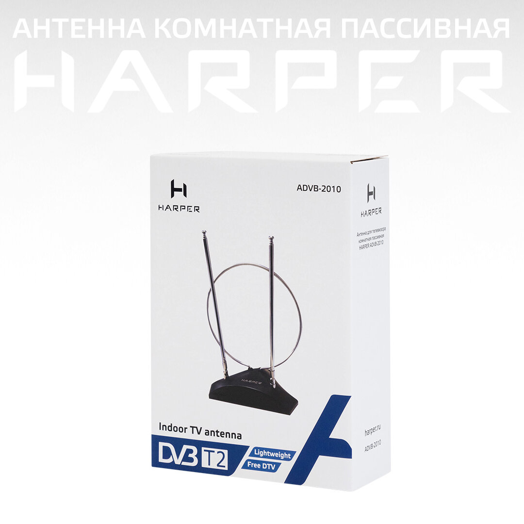 Антенны ТВ HARPER Антенна комнатная HARPER ADVB-2010 (пассивная, DVB-T2, 5-7 дБ, коробка)