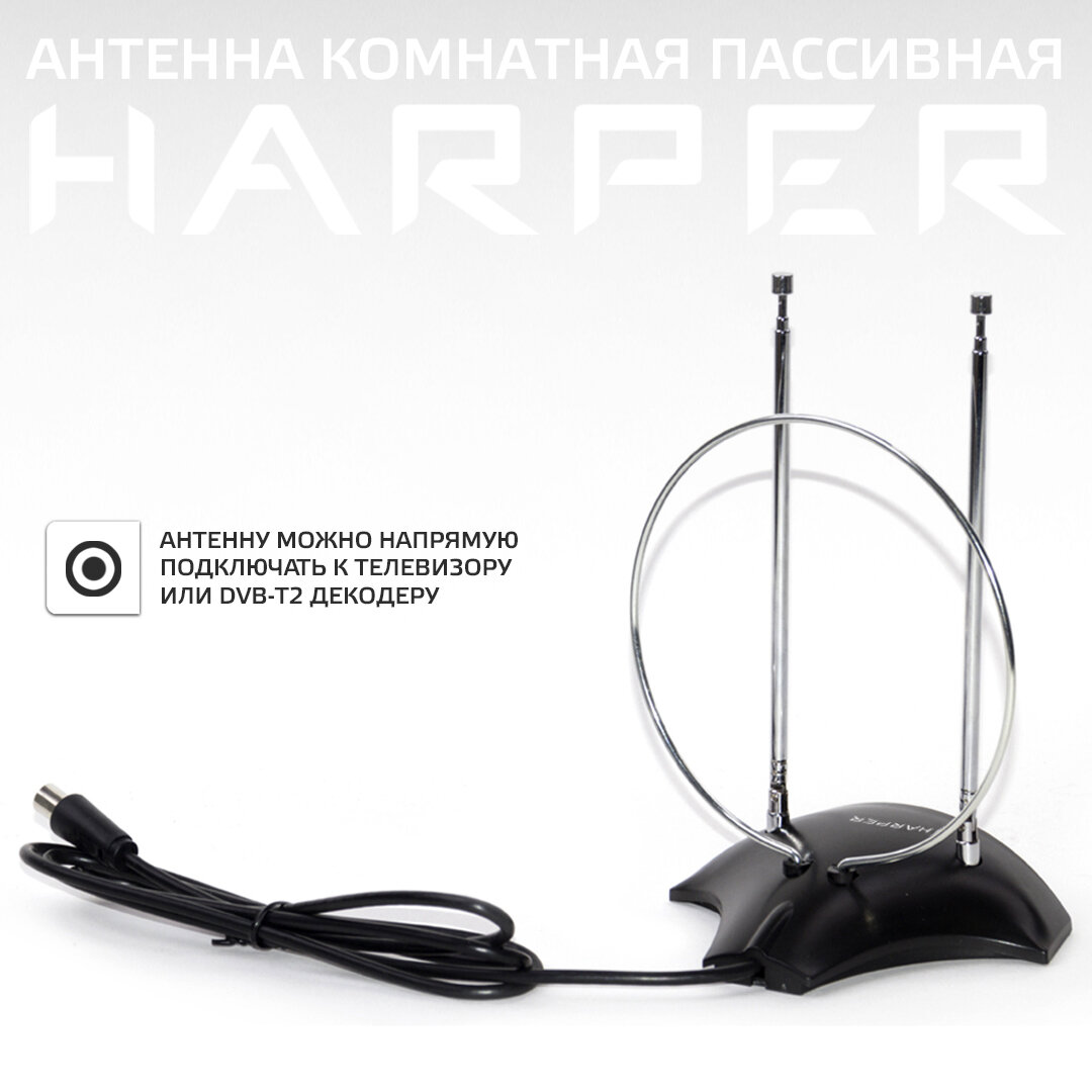 Антенна для телевизора комнатная (пассивная, всеволновая) HARPER ADVB-2010, черный