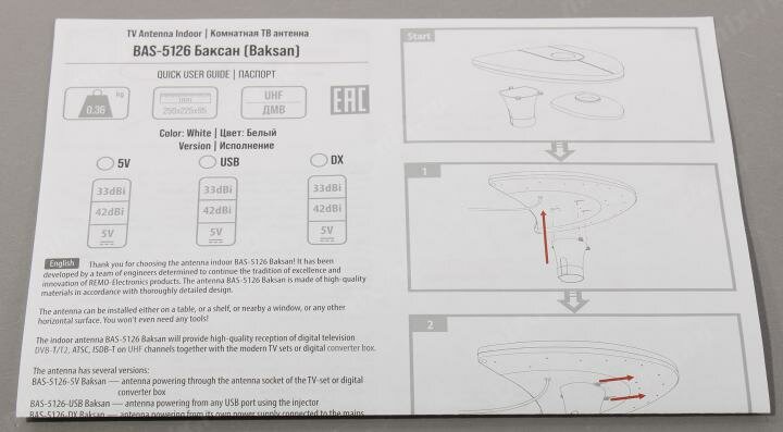 Антенна ТВ комнатная цифровая с усилителем баксан-usb эфирная для DVB-T2 Рэмо BAS-5126-USB