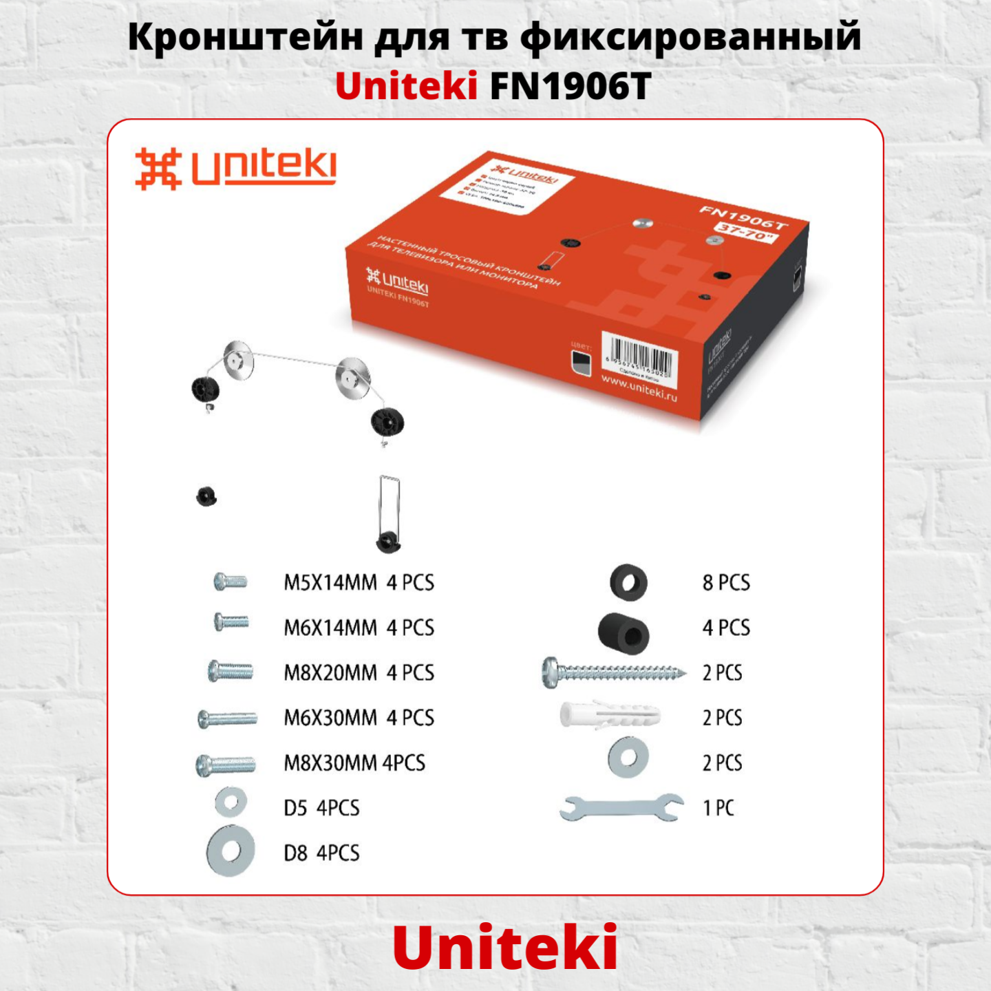 UniTeki FN1906T черно-серый настенный ультратонкий кронштейн трос/струна для телевизора интересное: