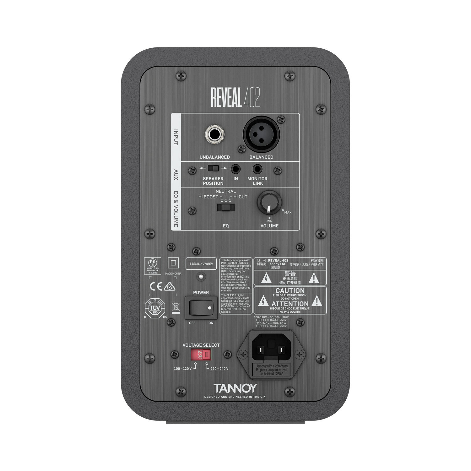 Tannoy REVEAL 402 активный монитор ближнего поля. 50Вт 4"(100мм) НЧ/СЧ драйвер и 3/4"(19мм) soft dome твитер. SPL 101дБ (макс.) Частотный диапазон 56H