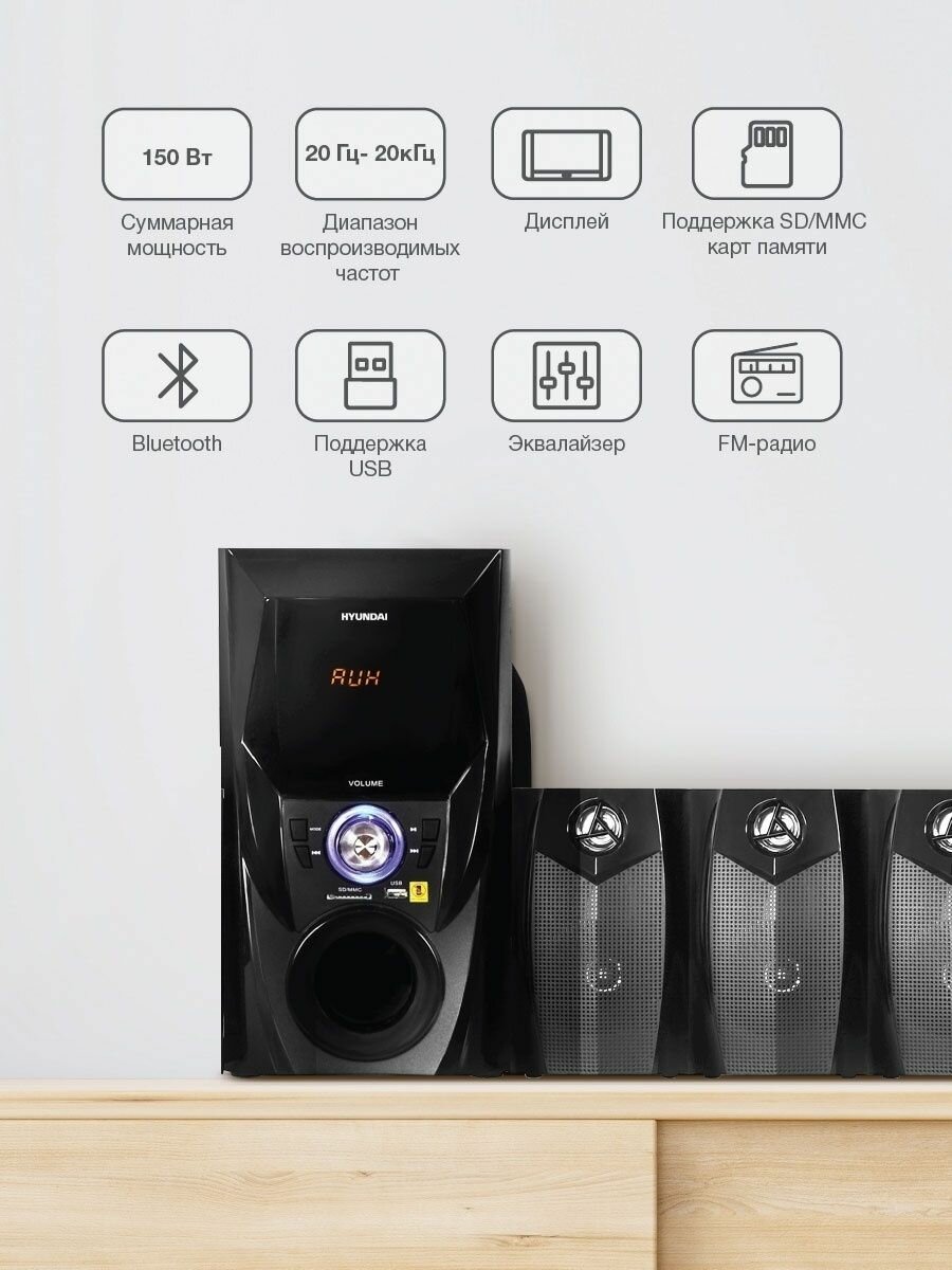 Микросистема Hyundai черный 150Вт FM USB BT SD/MMC/MS