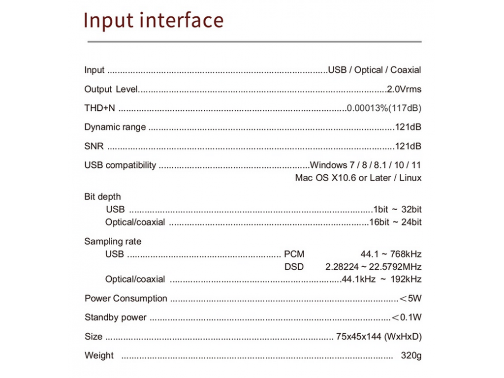 | Отношение сигнал/шум | 120 дБ |