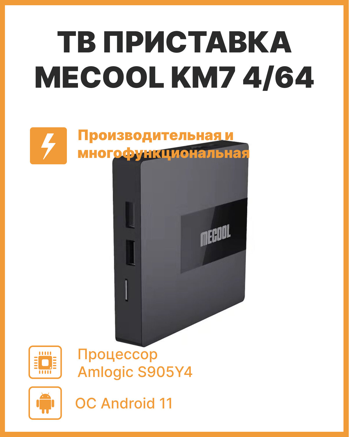 | Подробная комплектация | тв приставка MECOOL KM7 4/64, блок питания, HDMI кабель, пульт ДУ, инструкция (на английском языке). |