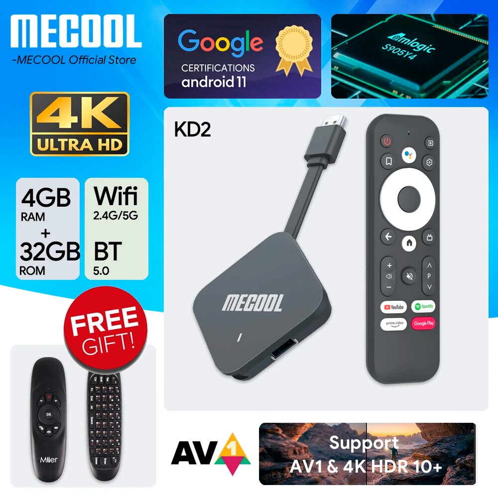 Приставка Смарт-ТВ MECOOL KD2, Android 11, 4 + 32 ГБ, Wi-Fi, BT Google Certified TV Stick Amlogic S905Y4 4GB 32GB 4K AV1 TV Dongle, KD2, Европейская
