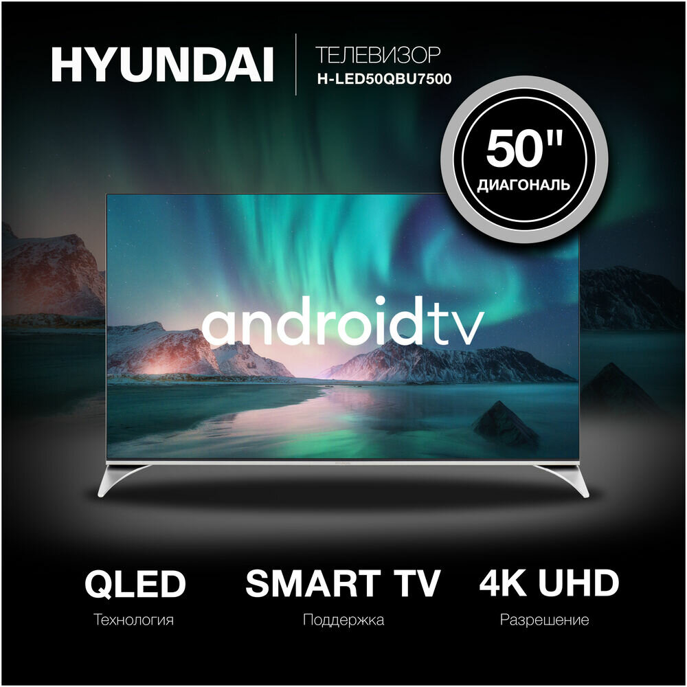 50" Телевизор Hyundai H-LED50QBU7500, QLED, 4K Ultra HD, черный, SMART TV, Android