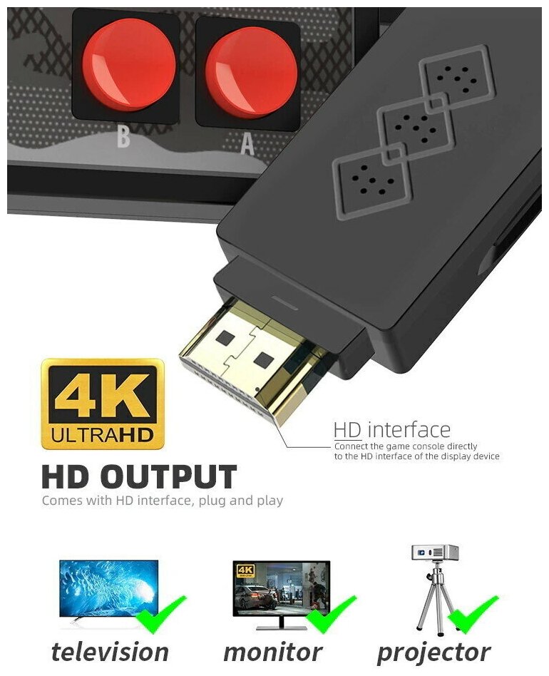Игровая консоль приставка для телевизора Game Stick Lite/ ТВ/ TV приставка, 20 000 игр