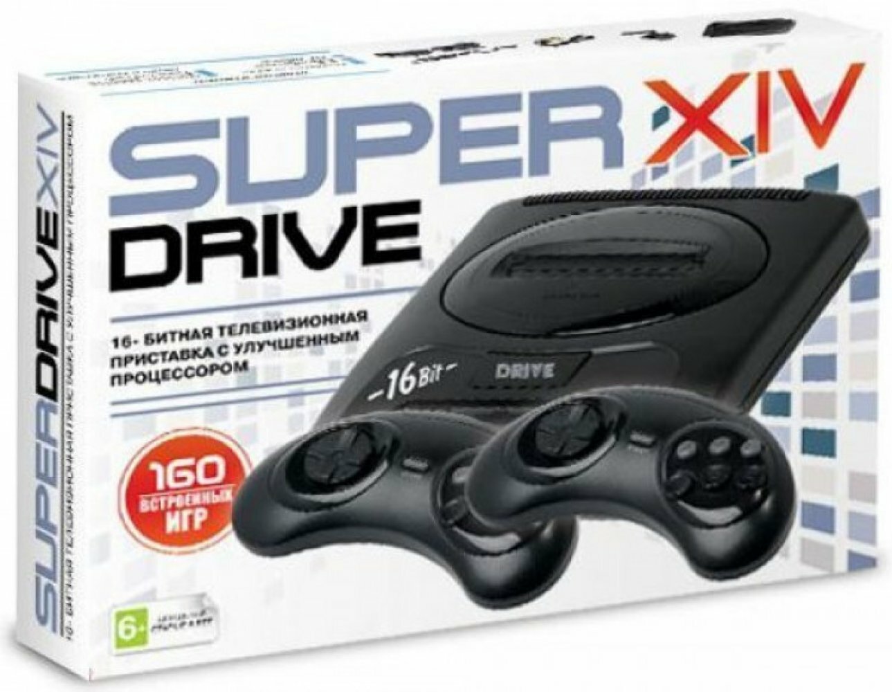 Игровая приставка 16 bit Super Drive 14 (160 в 1) + 160 встроенных игр + 2 геймпада (Черная)