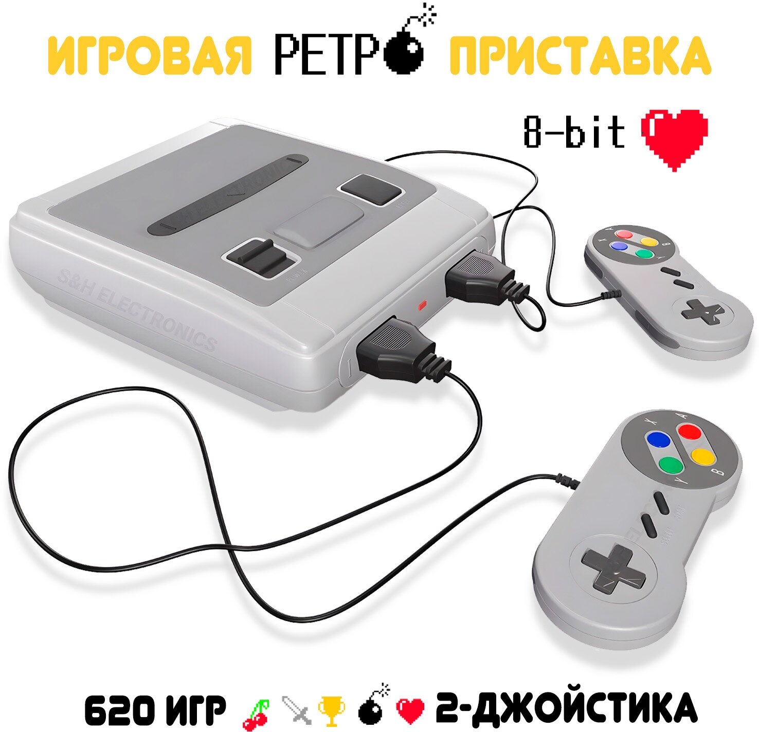 S&H Electroniсs Игровая ретро приставка для двоих 8 бит 620 игр из детства с двумя джостиками консоль для телевизора интересное: