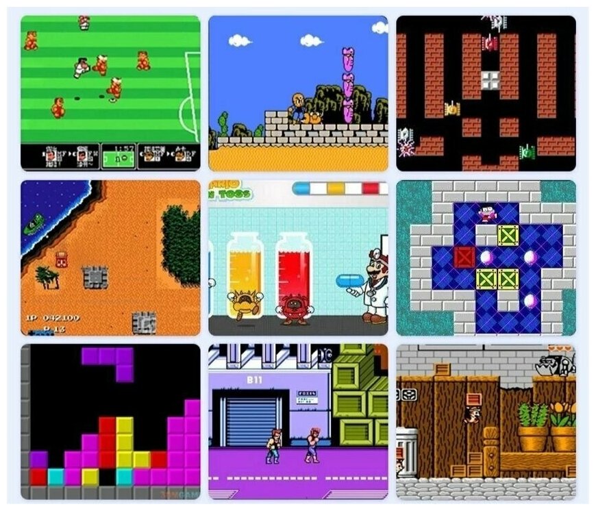 Игр много, как и заявлено. Есть и Марио, и танчики, и Чип и Дейл, Черепашки Нинзя и многие другие. |