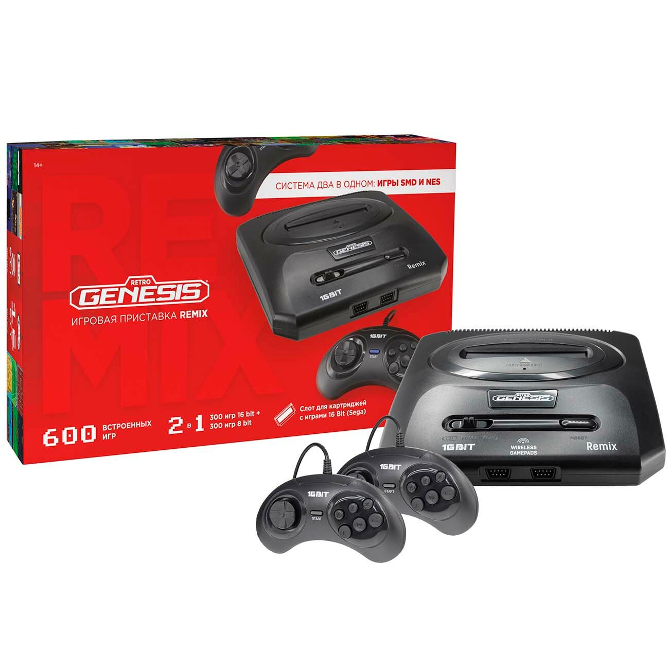 Retro Genesis Remix (8+16Bit) + 600 игр (AV кабель, 2 проводных джойстика)