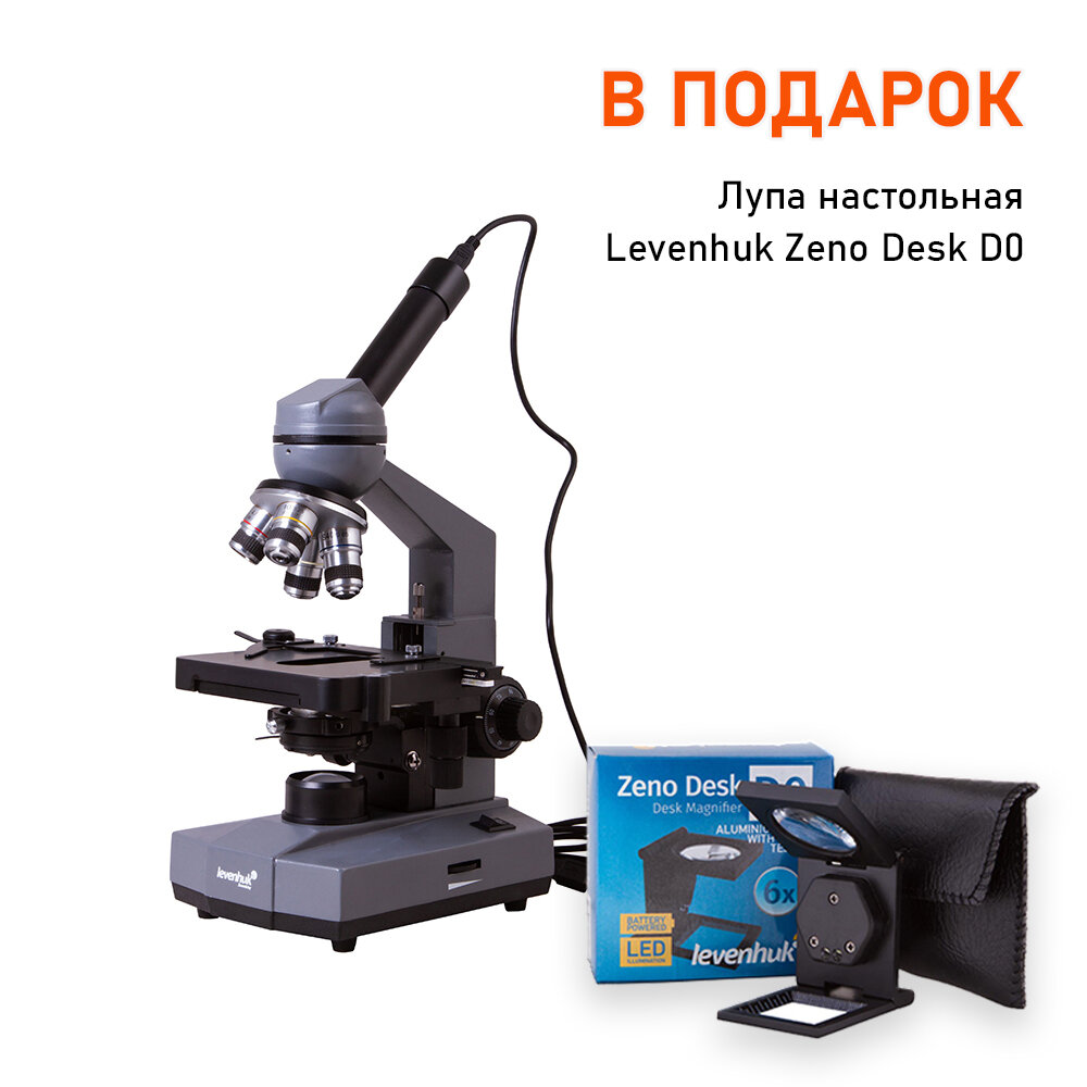Купить Микроскоп цифровой Levenhuk D320L BASE, 3 Мпикс, монокулярный + Лупа настольная Levenhuk Zeno Desk D0