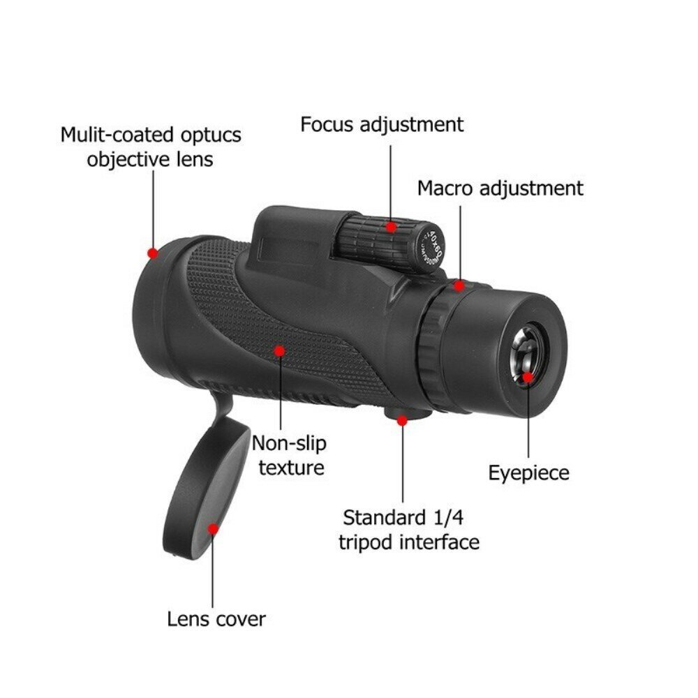 Портативный монокулярный телескоп с объективом ночного видения 40X60 HD с зажимом для телефона и штативом интересное: