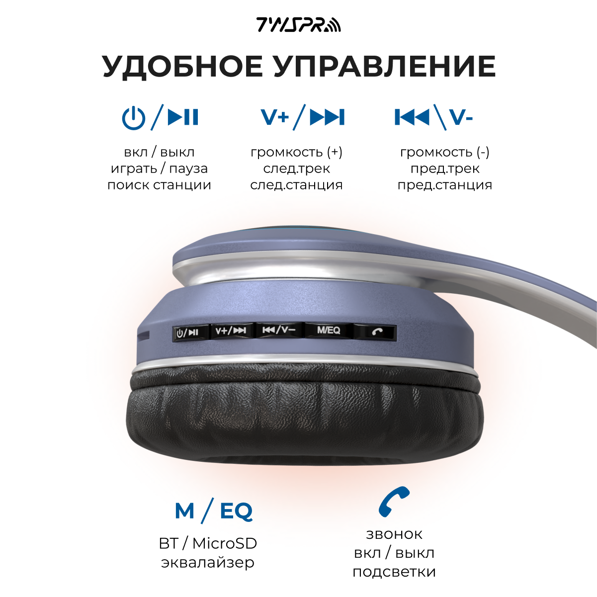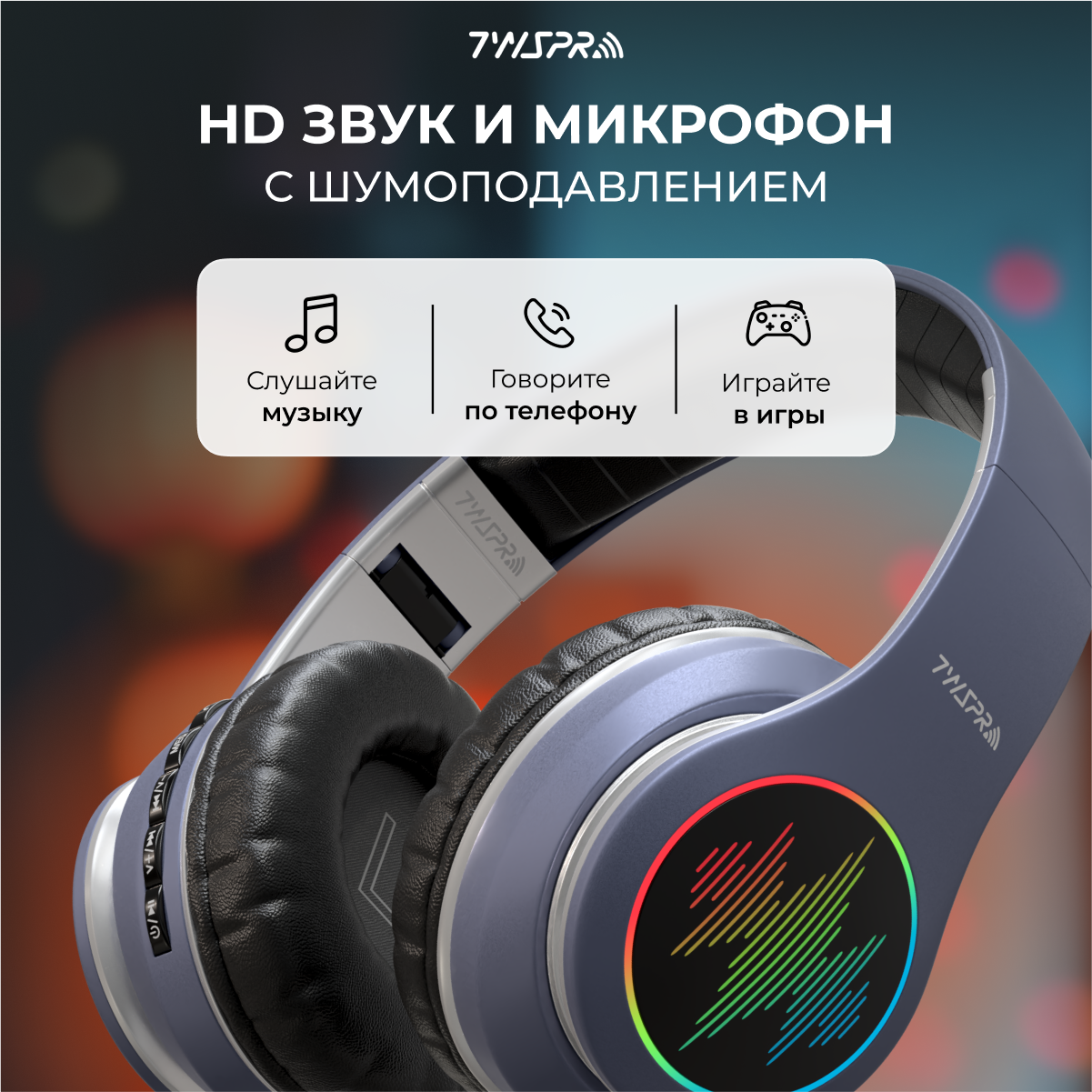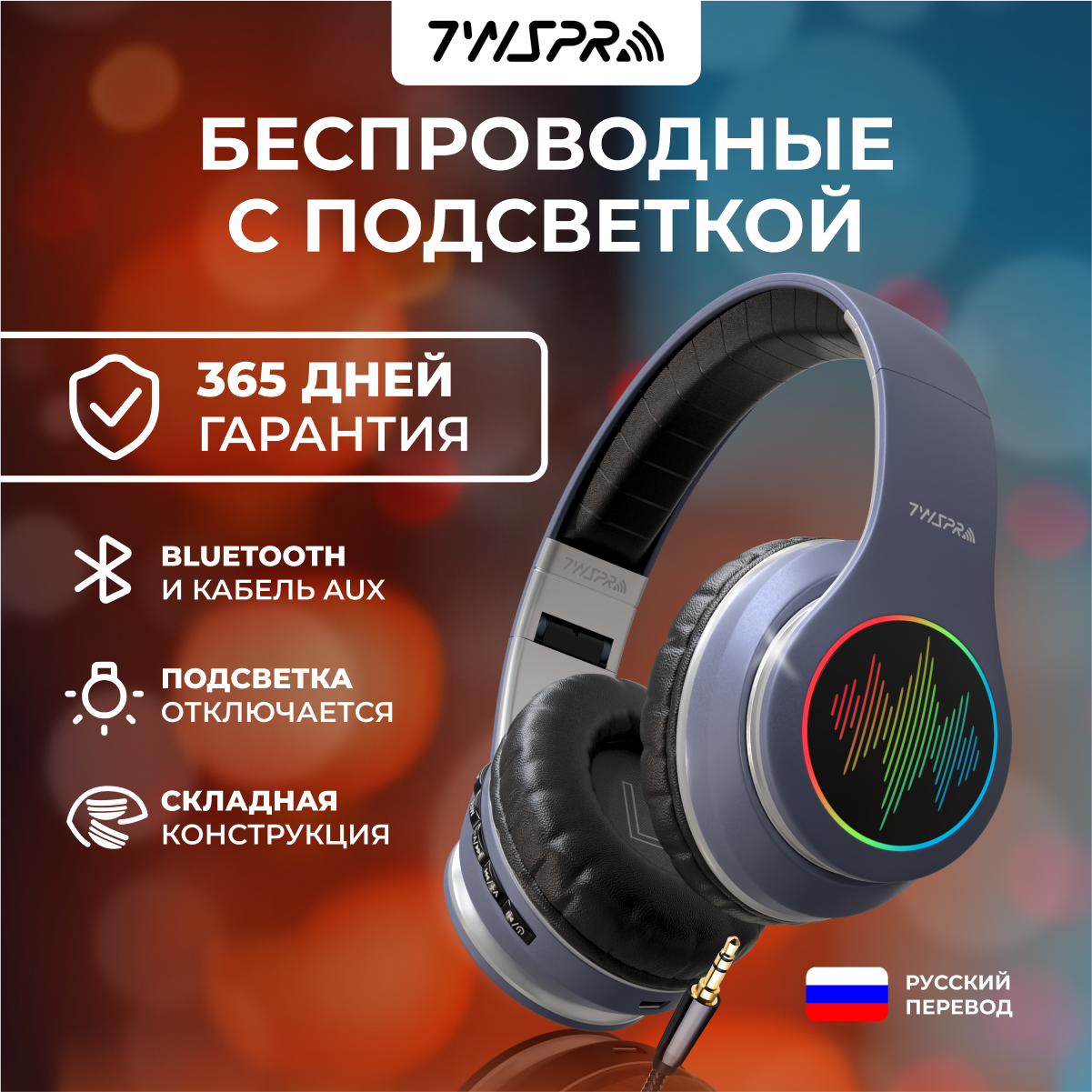 | Конструктивные особенности | подсветка / микрофон / складная конструкция / возможность проводного подключения |