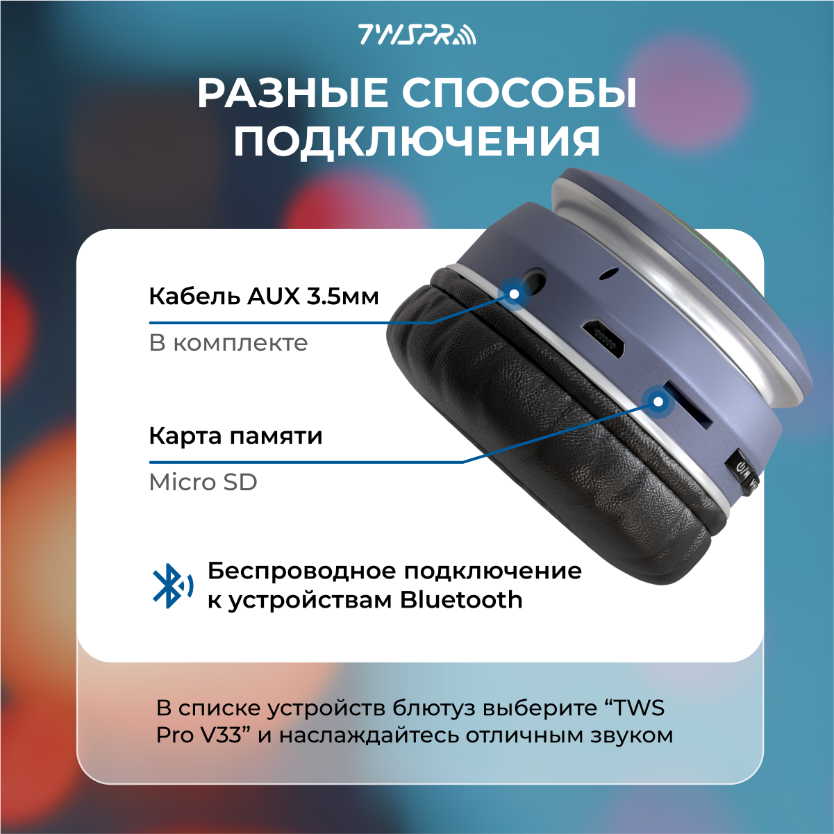 Светящиеся беспроводные наушники TWS Pro V33 / Игровые наушники с микрофоном / Накладные беспроводные наушники блютуз интересное: