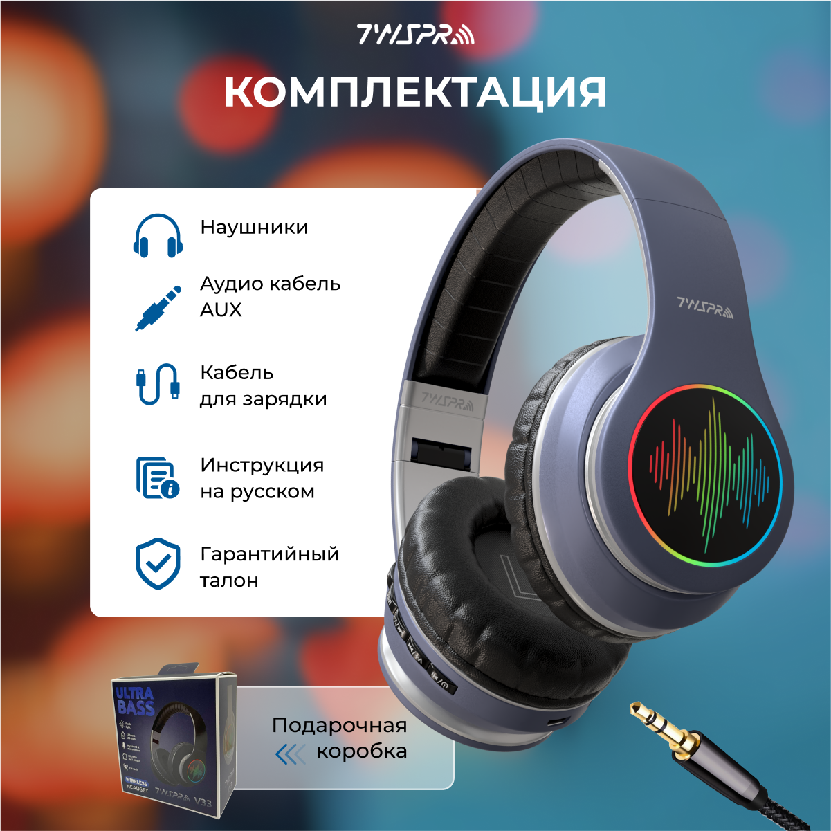 Ниже Вы можете прочитать отзывы на Светящиеся беспроводные наушники TWS Pro V33 / Игровые наушники с микрофоном / Накладные беспроводные наушники блютуз, ознакомится с подробными характеристиками, посмотреть интересные обзоры и фотографии на Светящиеся беспроводные наушники TWS Pro V33 / Игровые наушники с микрофоном / Накладные беспроводные наушники блютуз.