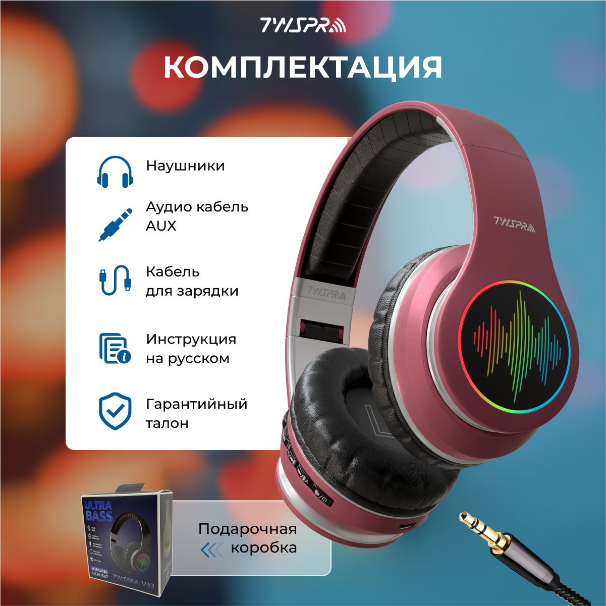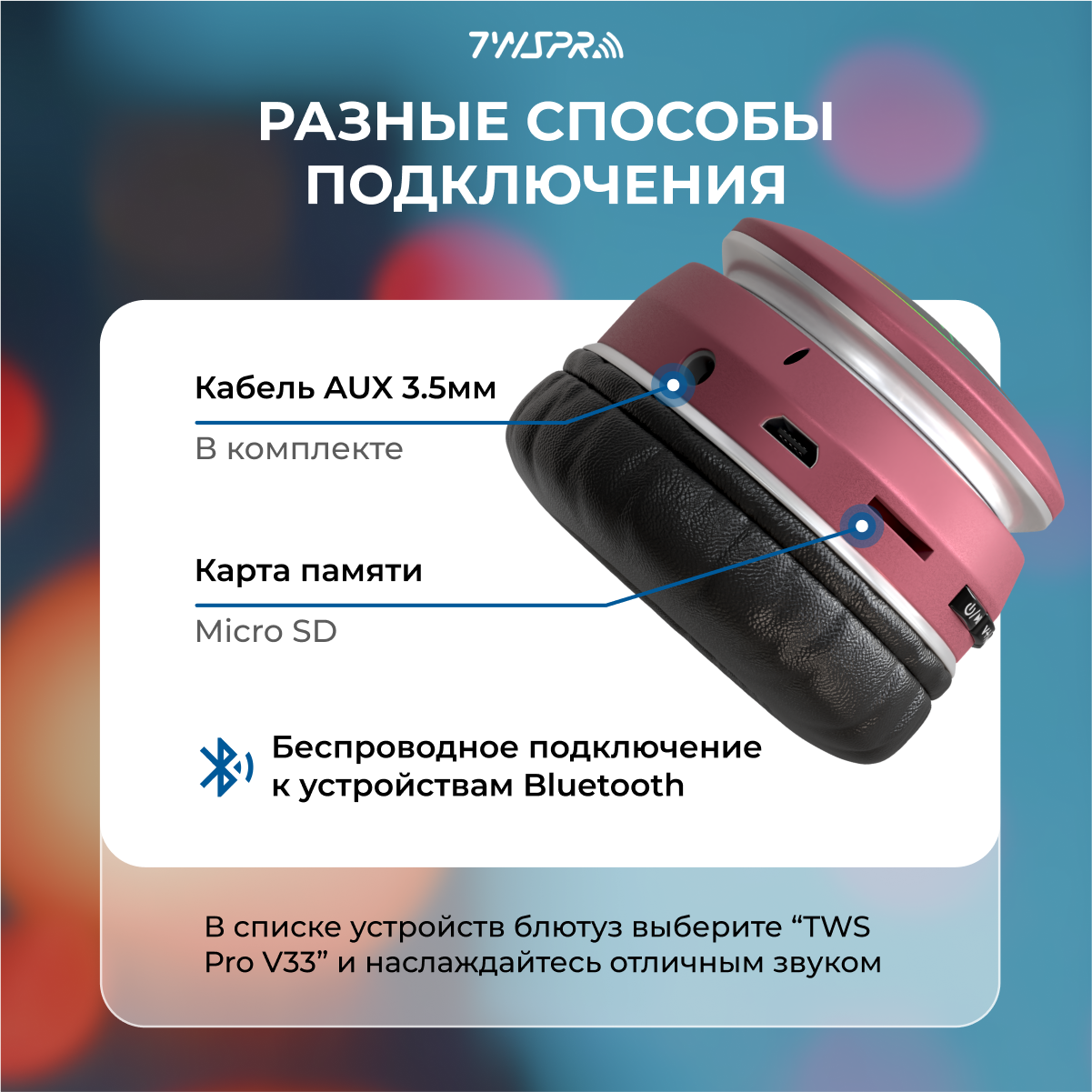 Купить Светящиеся беспроводные наушники блютуз TWS Pro V33 / Игровые наушники с микрофоном / Накладные беспроводные наушники