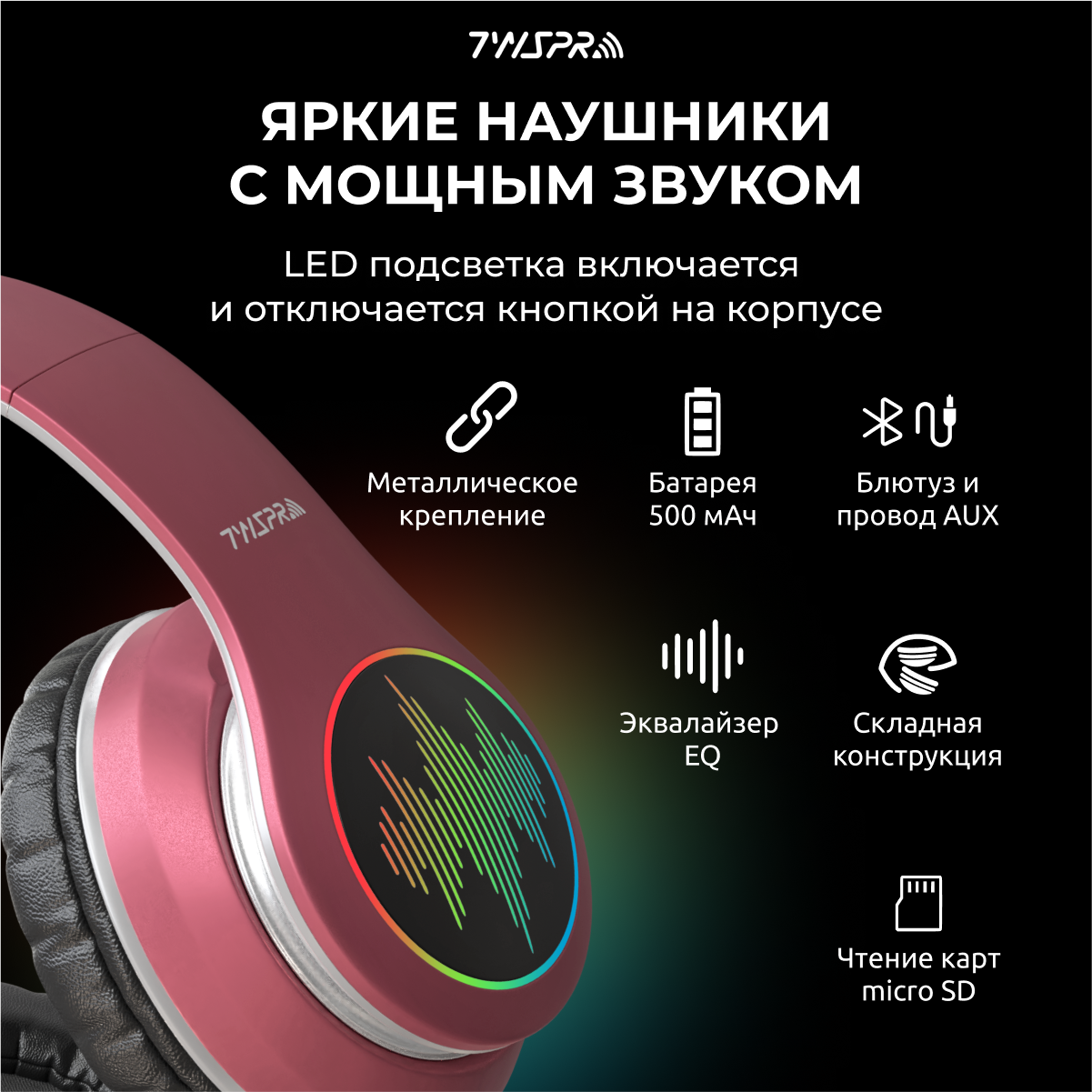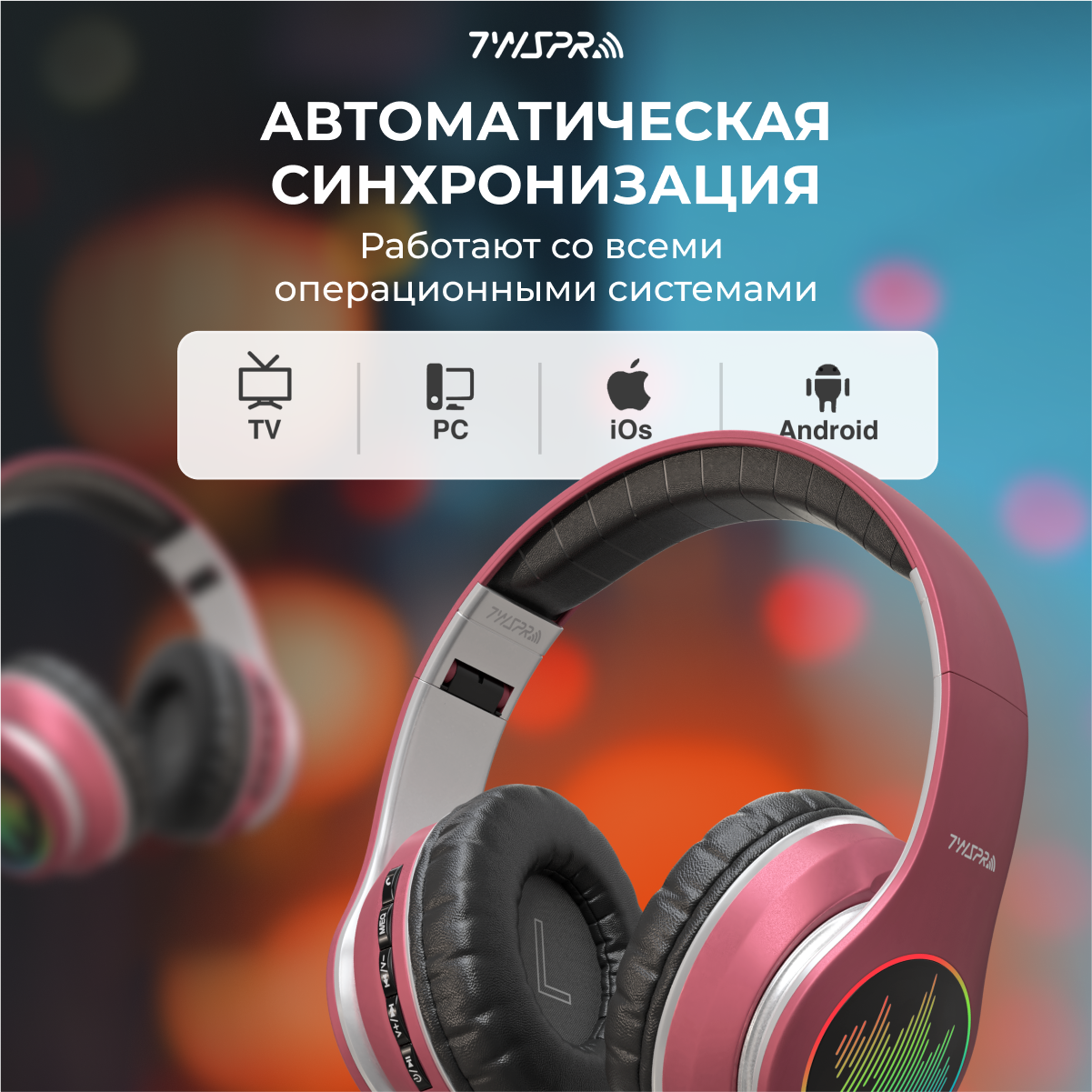 Светящиеся беспроводные наушники блютуз TWS Pro V33 / Игровые наушники с микрофоном / Накладные беспроводные наушники интересное: