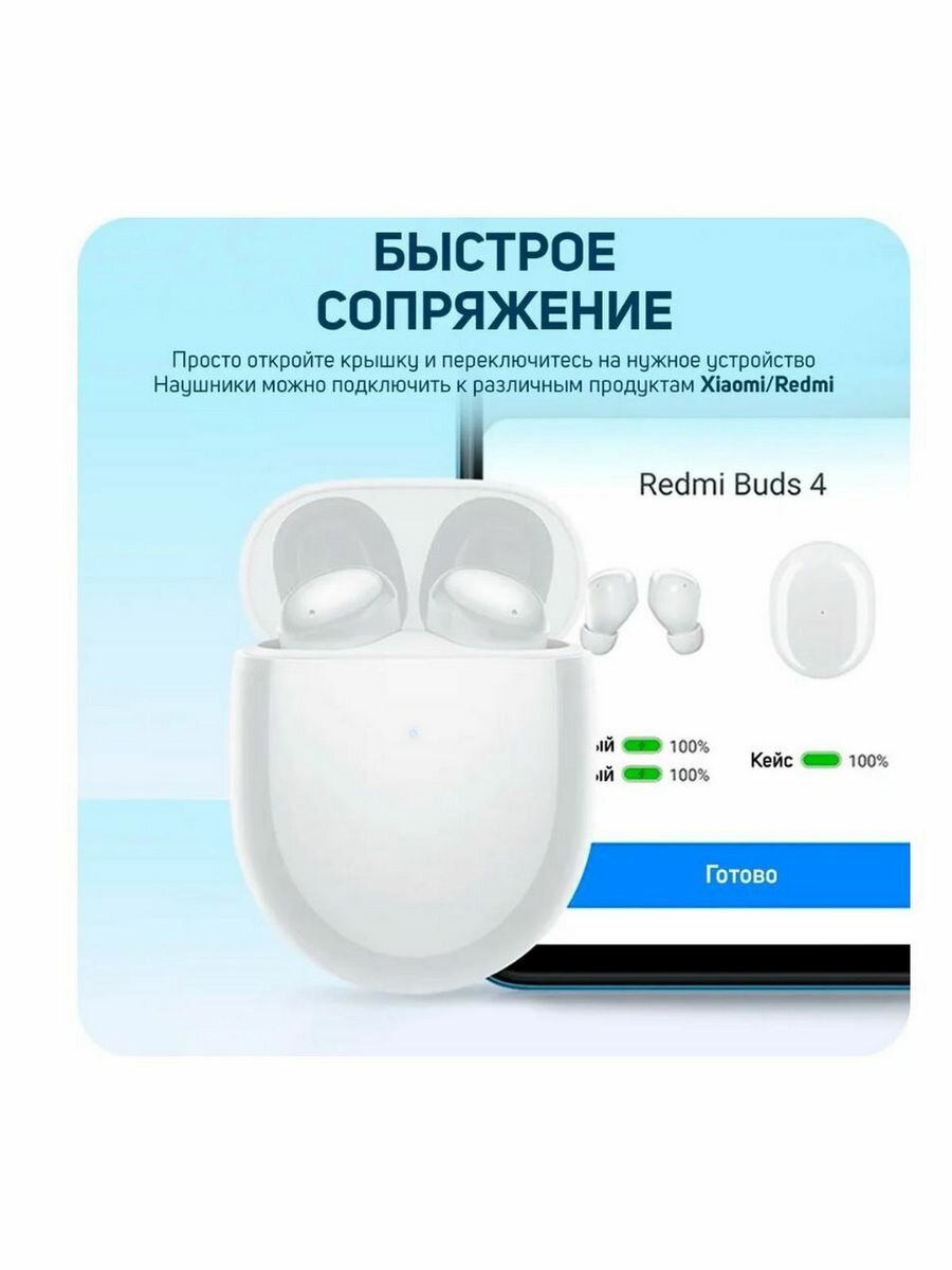Наушники Redmi Buds 4 (BHR5846GL), шумоподавление, 48/490 мАч, BT 5.2, белые