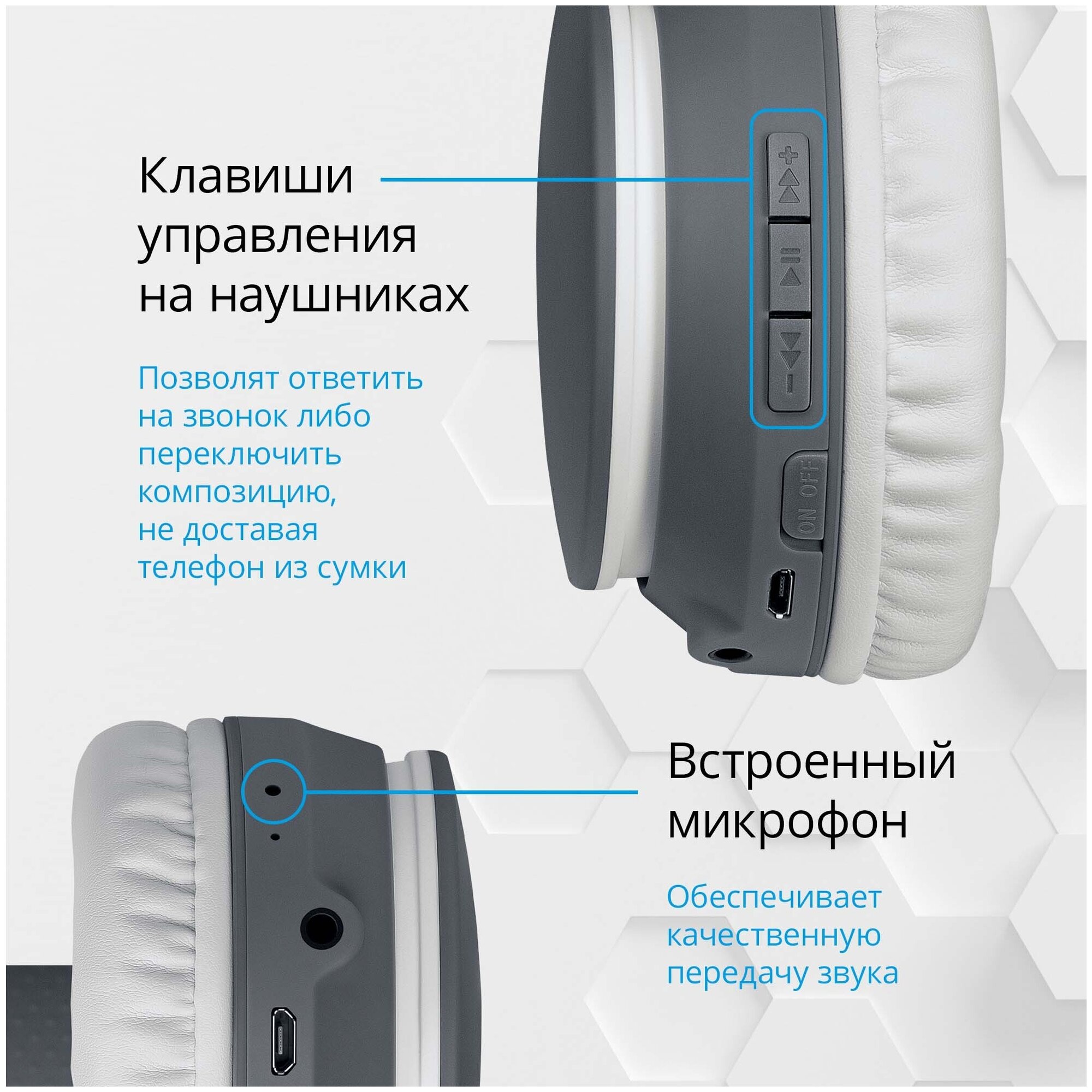 Bluetooth-наушники полноразмерные Defender FreeMotion B580, цвет серый, 1 шт