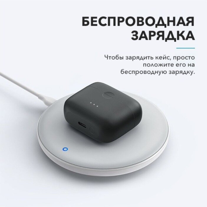 Приятный кейс Беспроводная зарядка/type C Много амбушюр в комплекте Долгое время жизни от батареи |
