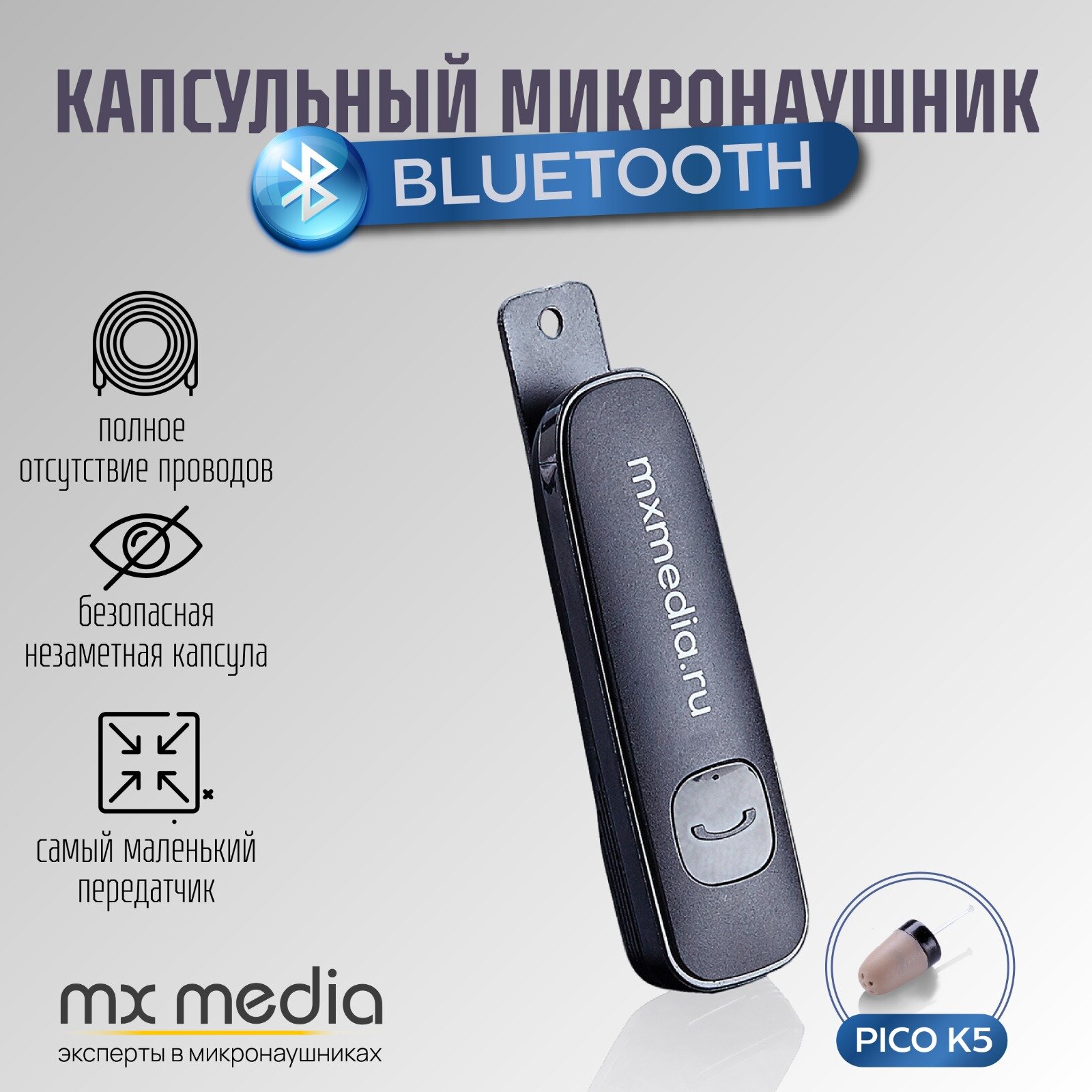 Микронаушник Mxmedia беспроводной Box mini интересное: