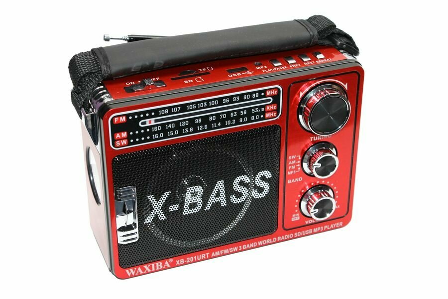 Радиоприемник портативный красный / ФМ радио / FM radio / AM / SW /MP3/ USB / TF card со встроенным аккумулятором / от сети / от батареи / с фонариком интересное: