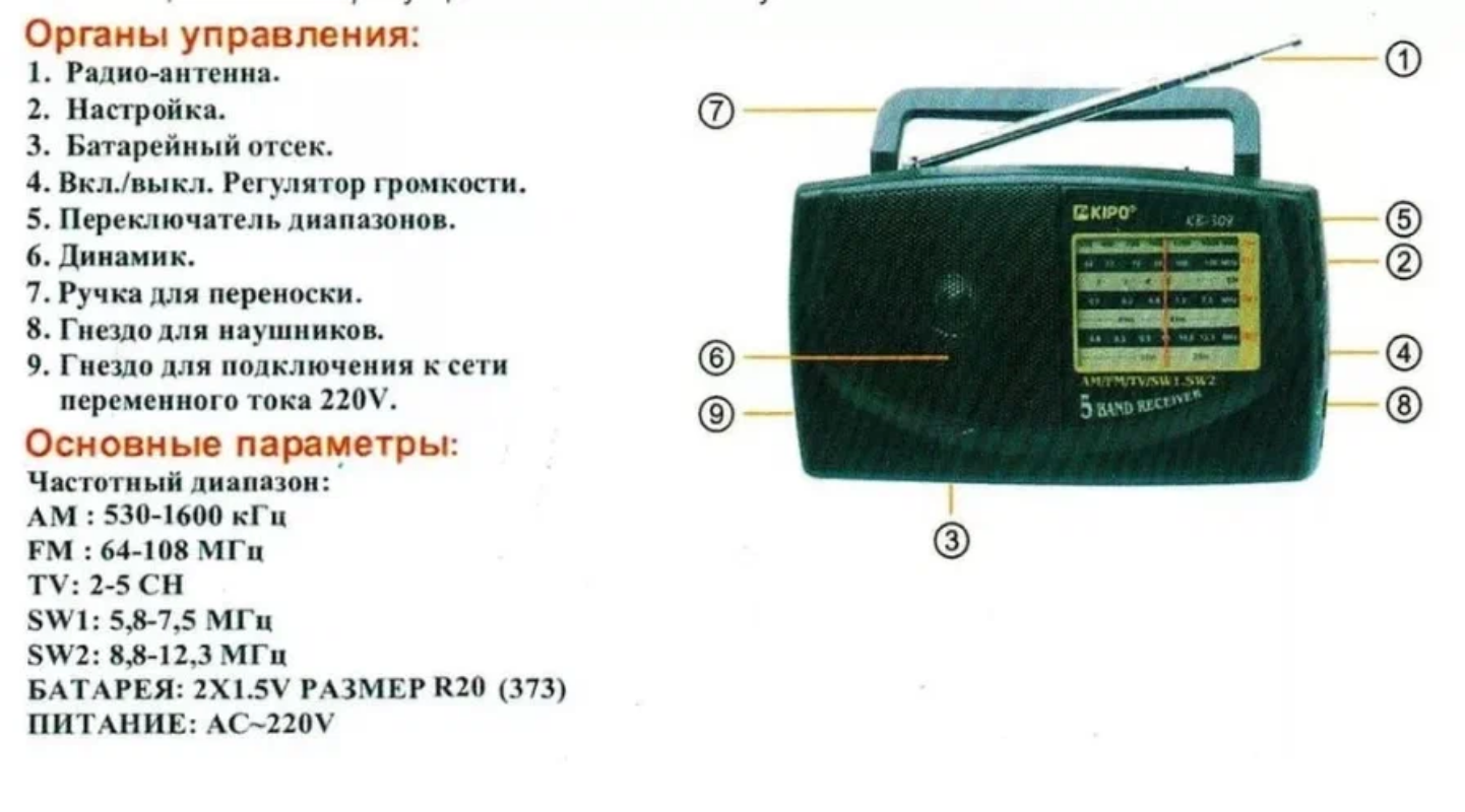 Радиоприемник KIPO KB-308AC с механической регулировкой, от батареек и сети интересное: