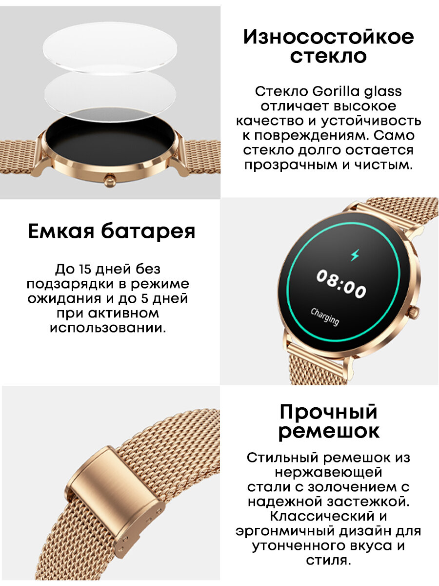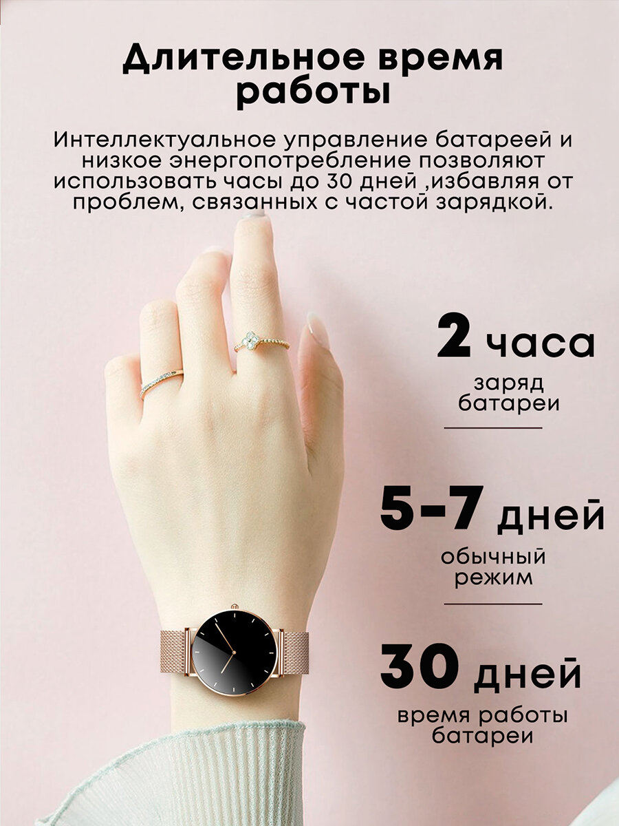 | Плюсы: | Тонкие, хорошо лежат на руке. Качественный металлический корпус. Браслет "дышит", руке комфортно. Качественный экран с хорошим разрешением. Простой удобный циферблат с постоянной индикацией. |