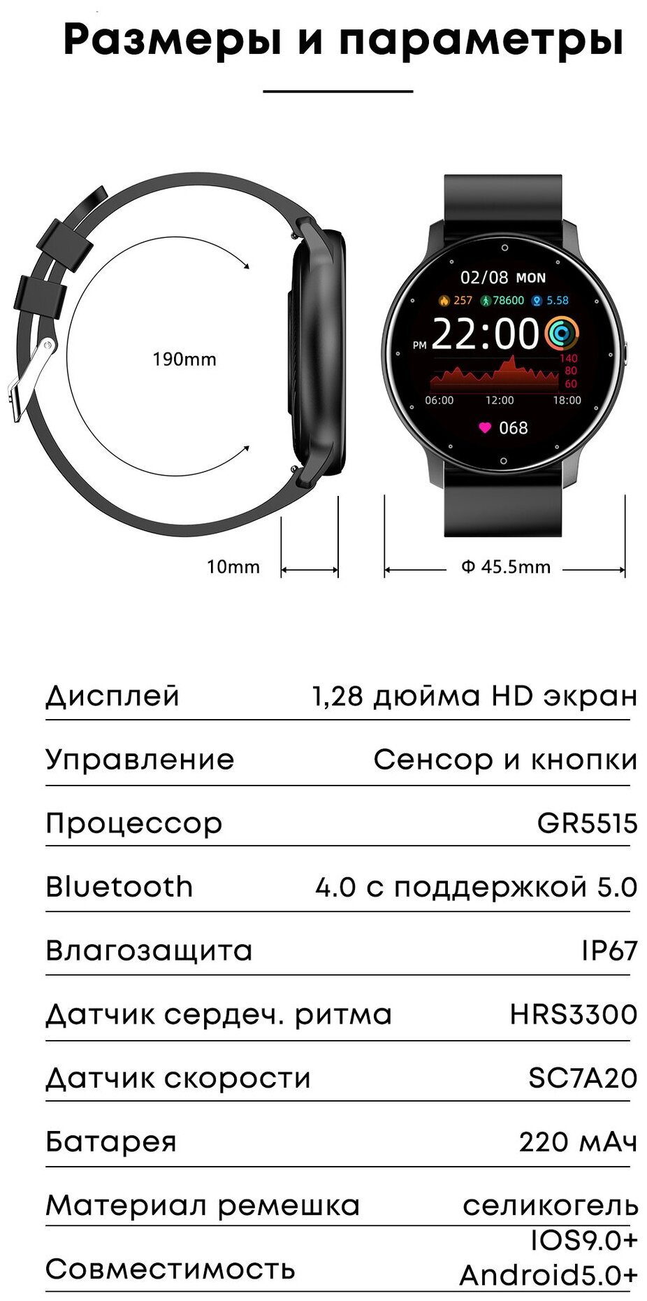 | Функции мониторинга | измерение уровня кислорода в крови / мониторинг сна / мониторинг физической активности / акселерометр / мониторинг калорий |