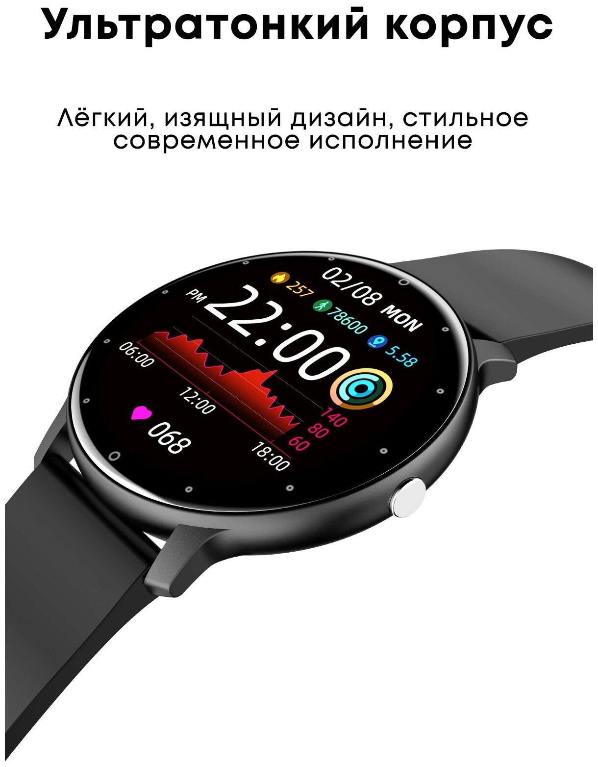 Lemfo Ультратонкие смарт часы Lemfo H10 (Черный) интересное: