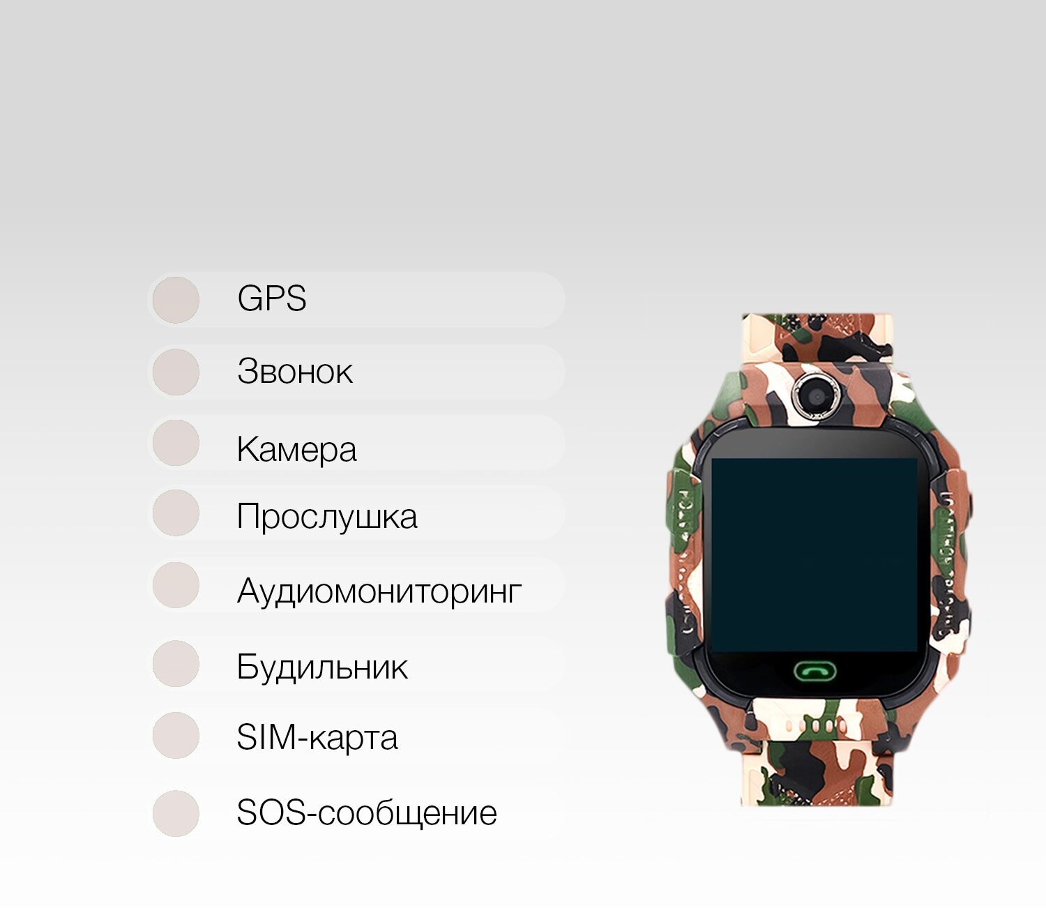 СохранитьДетские умные смарт часы телефон c сим картой и отслеживание местоположения и кнопкой SOS, милитари интересное: