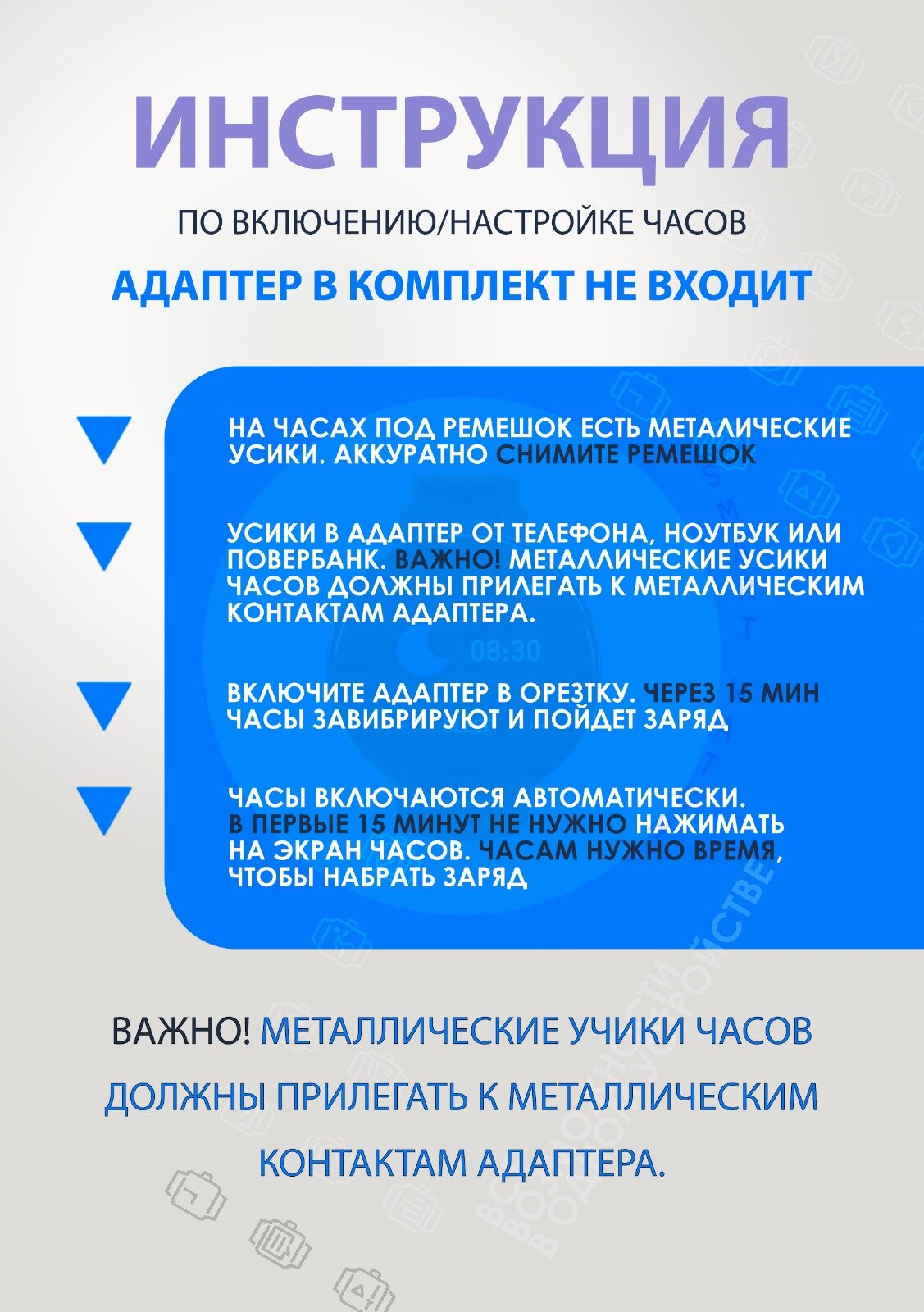 | Минусы: | Не работают, и не заряжаются. Мало того что пришли квадратные часы и совсем другая модель так еще и сломанные. Я в бешенстве!!! Деньги на ветер |