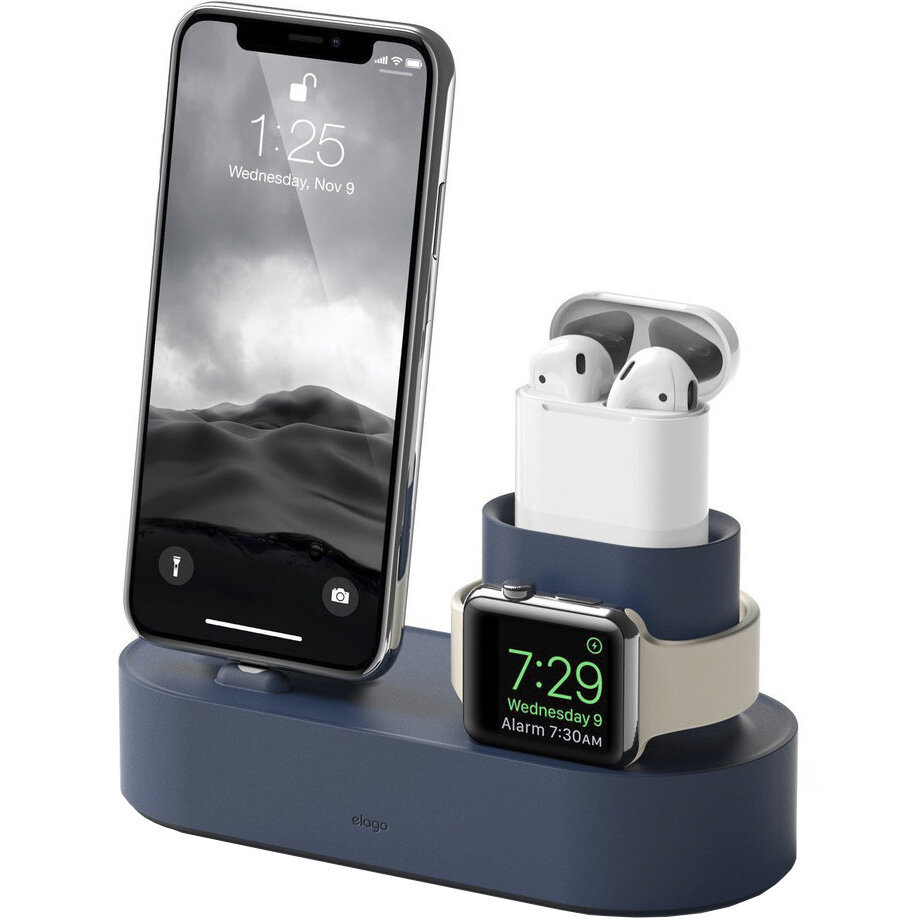 Док-станция Elago Charging Hub 3 in 1 для iPhone / Apple Watch / AirPods синяя (Jean Indigo) интересное: