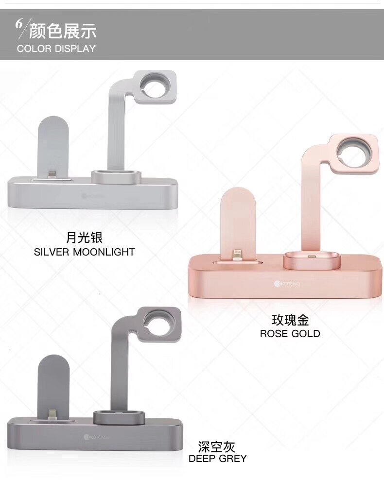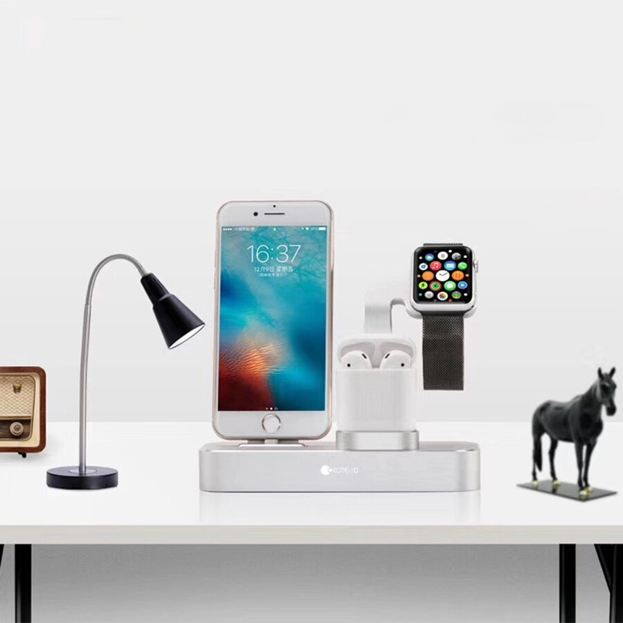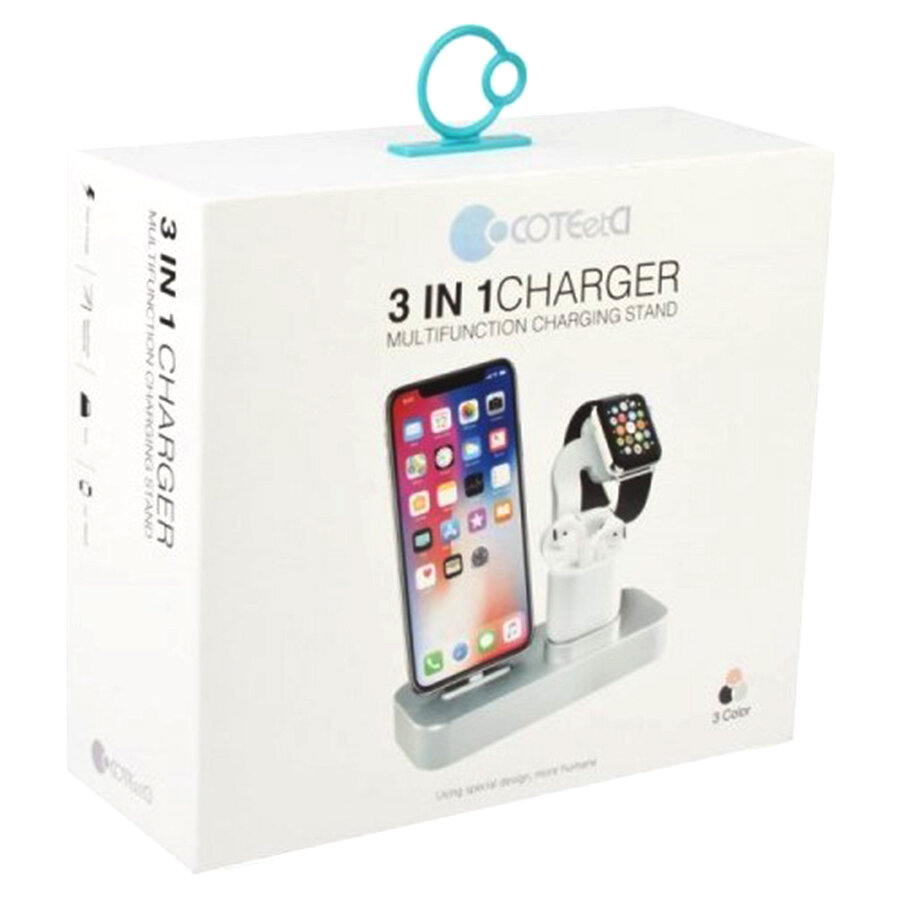 Настольная станция COTEetCI CS7201-TS BASE 19 3-in-1 + Lightning + AirPods + iWatch, серебристый