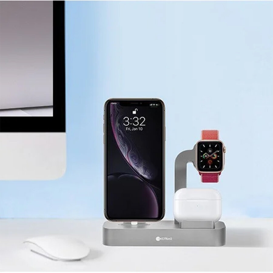 Купить Настольная станция COTEetCI CS7201-GY BASE 19 3-in-1 + Lightning + AirPods + iWatch, серый