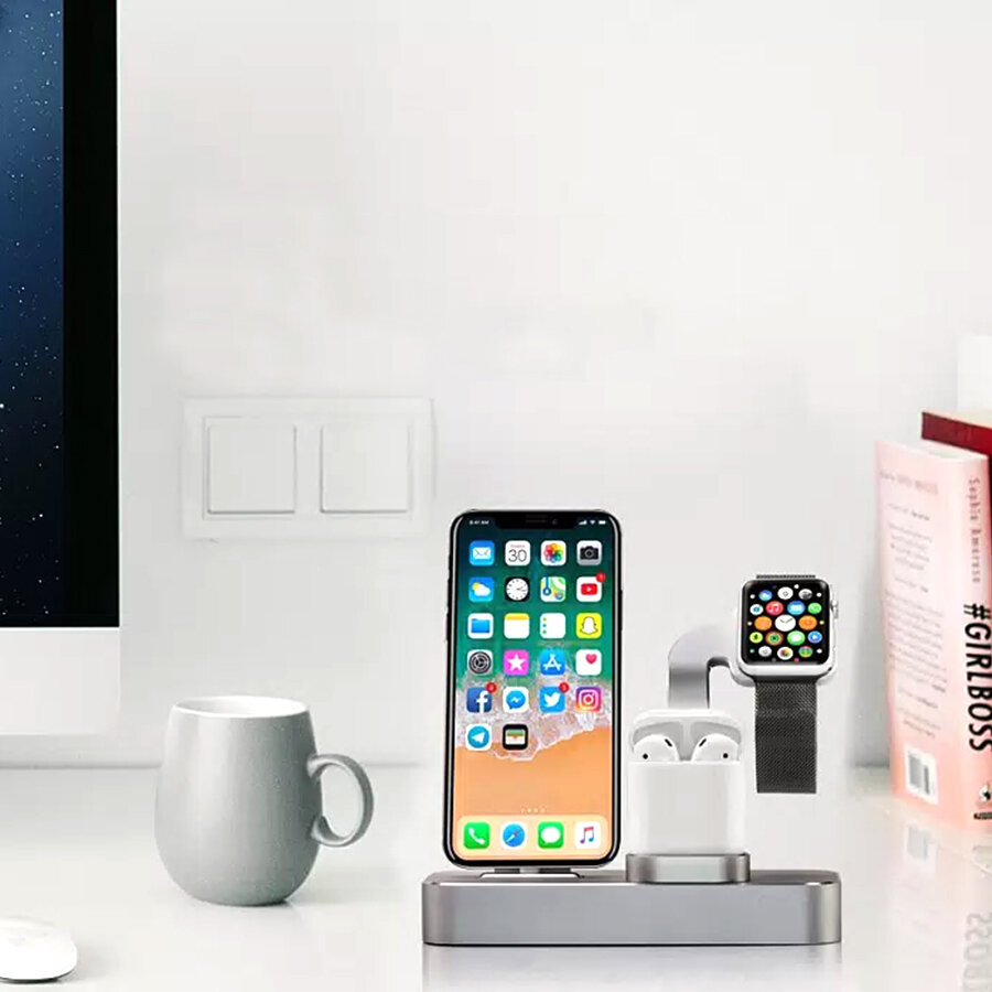 СохранитьНастольная станция COTEetCI CS7201-GY BASE 19 3-in-1 + Lightning + AirPods + iWatch, серый интересное:
