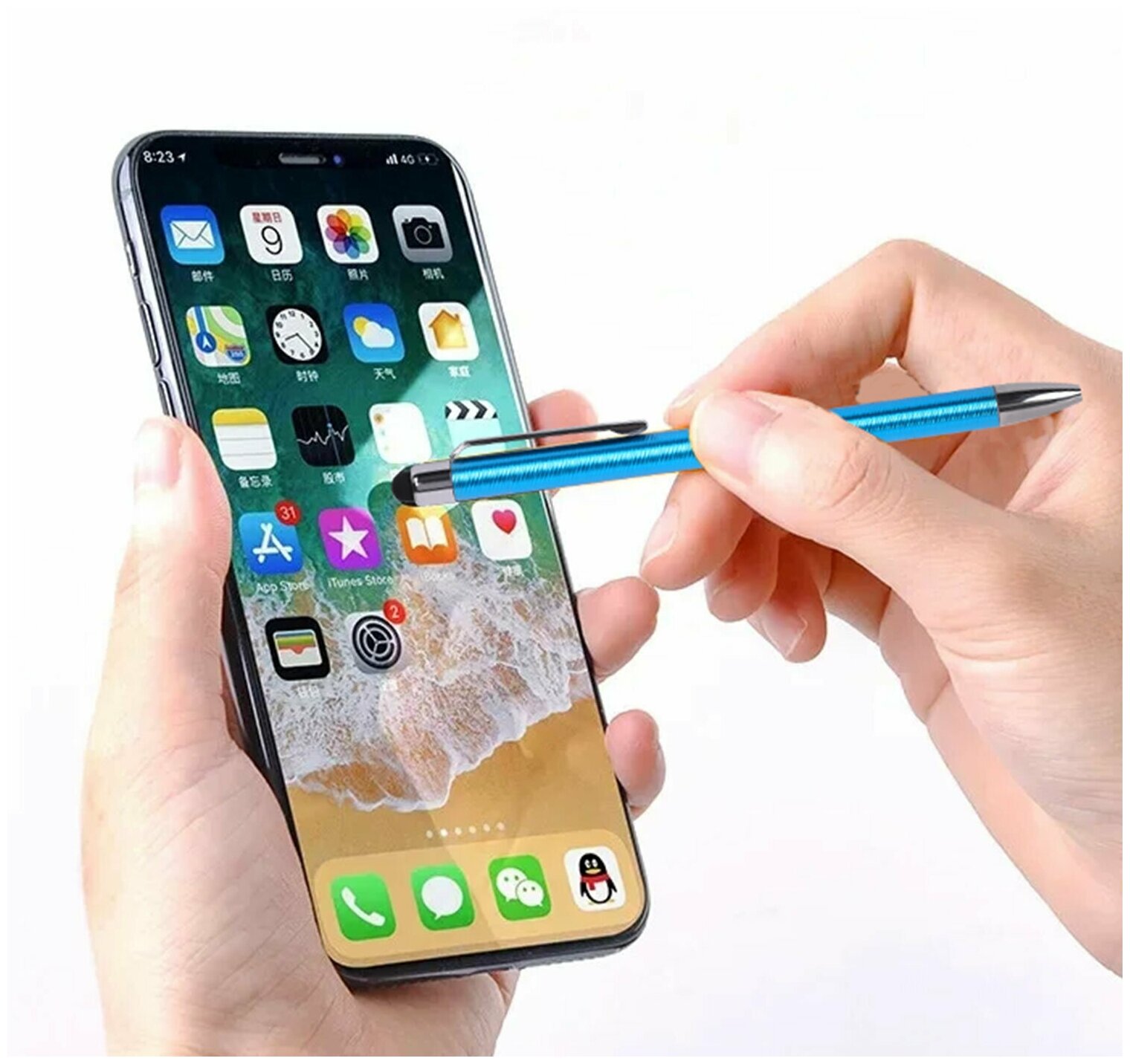 Ручка-стилус SONNEN для смартфонов/планшетов, синяя, корпус ассорти, серебристые детали, линия письма 1 мм, 141587 (141587)