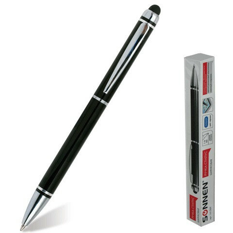 Ручка-стилус SONNEN для смартфонов/планшетов, синяя, корпус черный, серебристые детали, линия письма 1 мм, 141589 интересное: