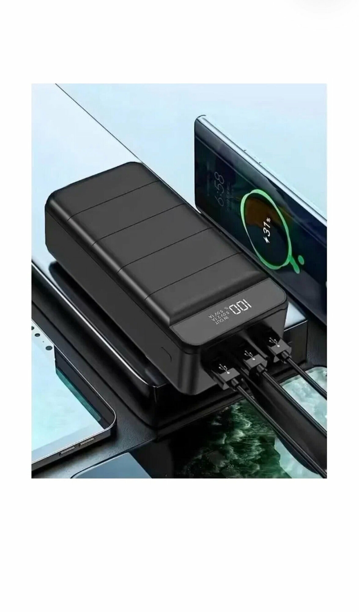 | Плюсы: | Большая емкость, экран зарядки, тайп си, ремешок |