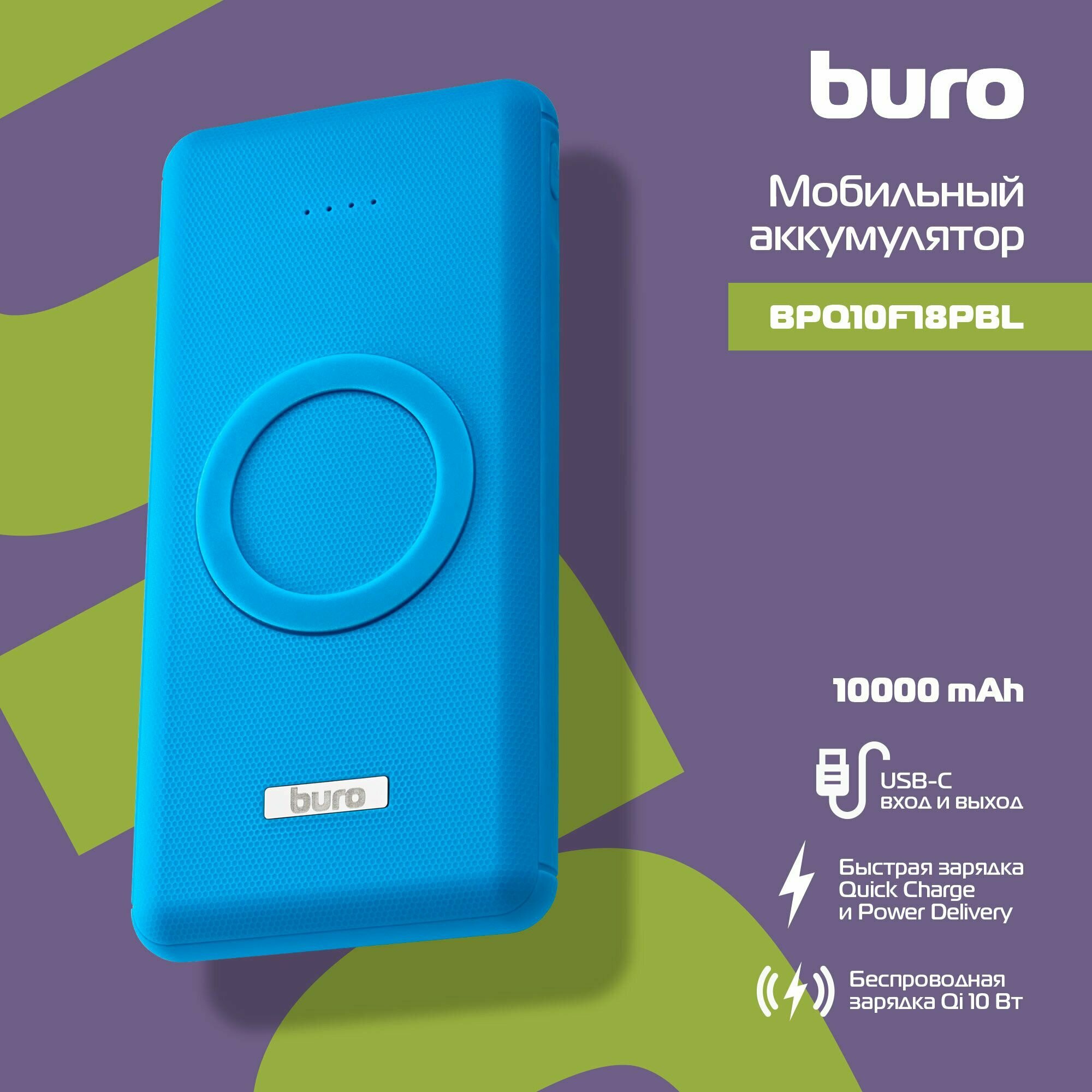 Мобильный аккумулятор Buro Bpq10f 10000mAh 3A QC PD беспроводная зарядка синий (bpq10f18pbl) Bpq10f1 .