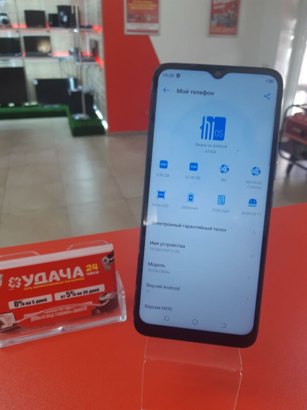 Сохранить6.5 Смартфон Tecno POP 5 LTE 32 ГБ синий 4x(1.6 ГГц. 1.2 ГГц). 2 Гб. 2 SIM. IPS. 1560x720. камера 8+0.08 Мп. 4G. GPS. FM. 5000 мА*ч интересное: