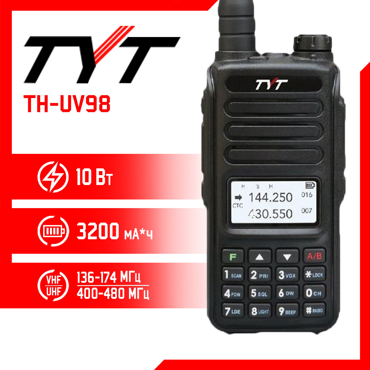 Ниже Вы можете прочитать отзывы на Портативная двухдиапазонная радиостанция TYT TH-UV98, ознакомится с подробными характеристиками, посмотреть интересные обзоры и фотографии на Портативная двухдиапазонная радиостанция TYT TH-UV98.