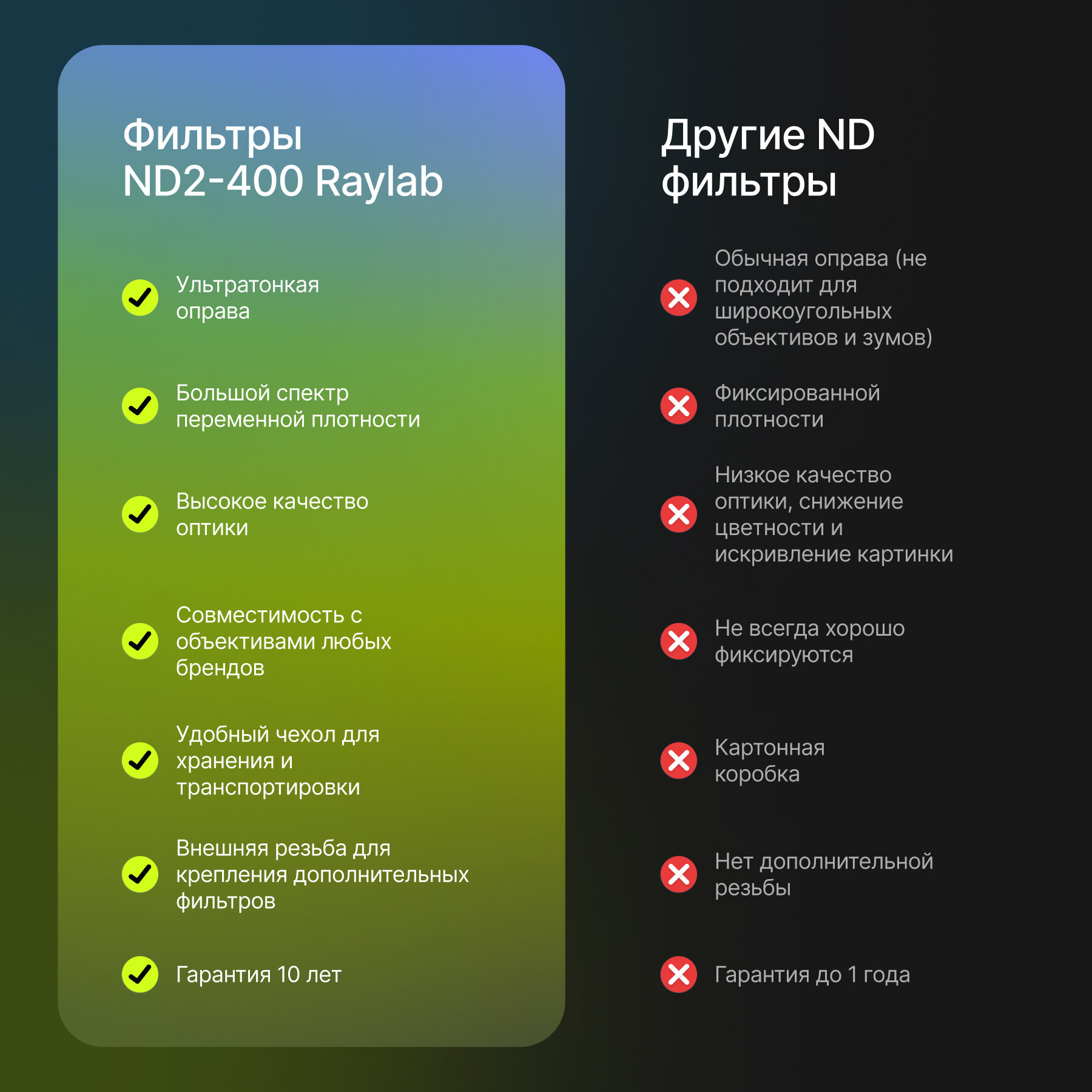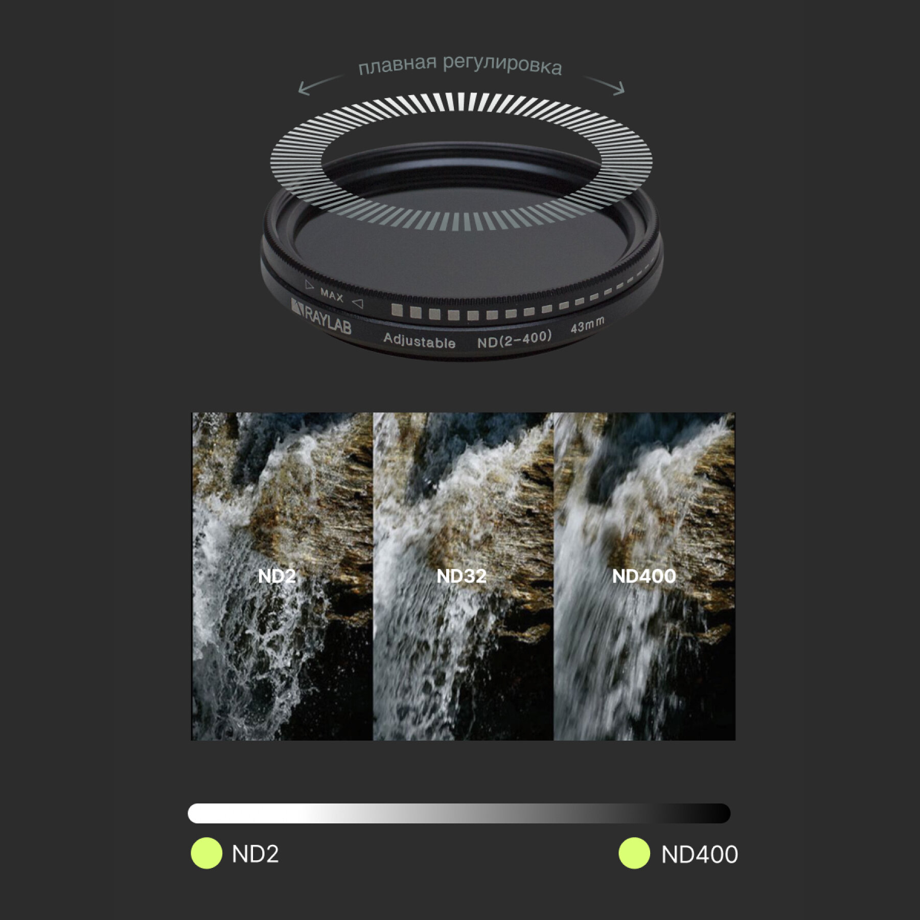 Фильтр нейтральный RayLab ND2-400 43mm интересное: