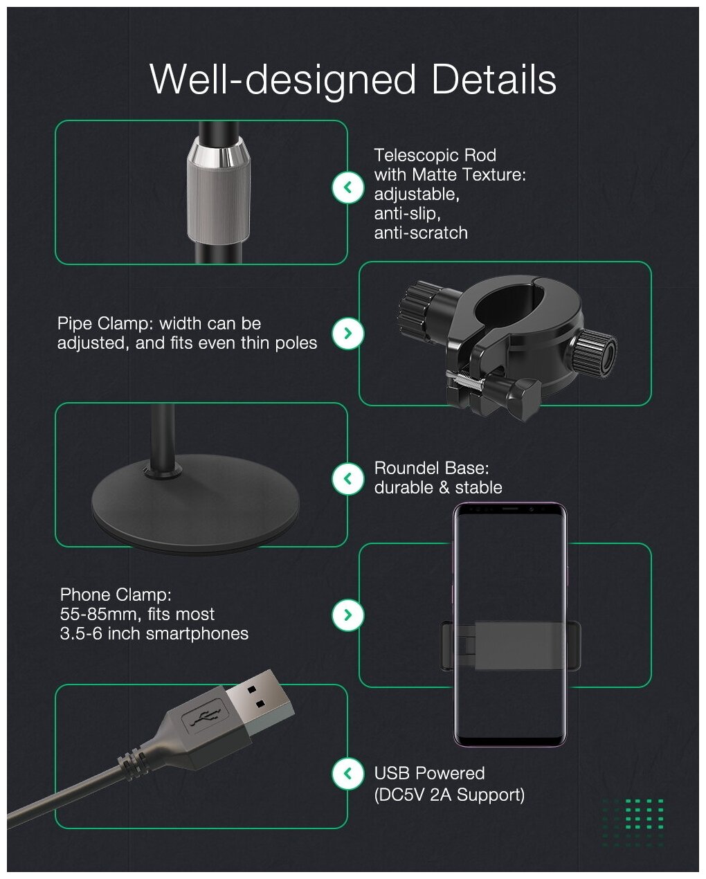 Держатель для телефона с кольцевой подсветкой BlitzWolf BW-SL4 Dimmable Ring Light for Live Vlog Youtube TikTok Black интересное: