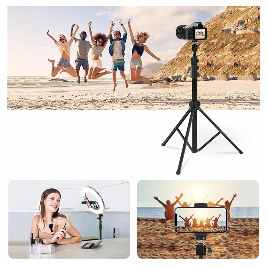 Штатив для телефона, фотоаппарата, камеры, кольцевой лампы напольный Jmary MT-38 - Черный