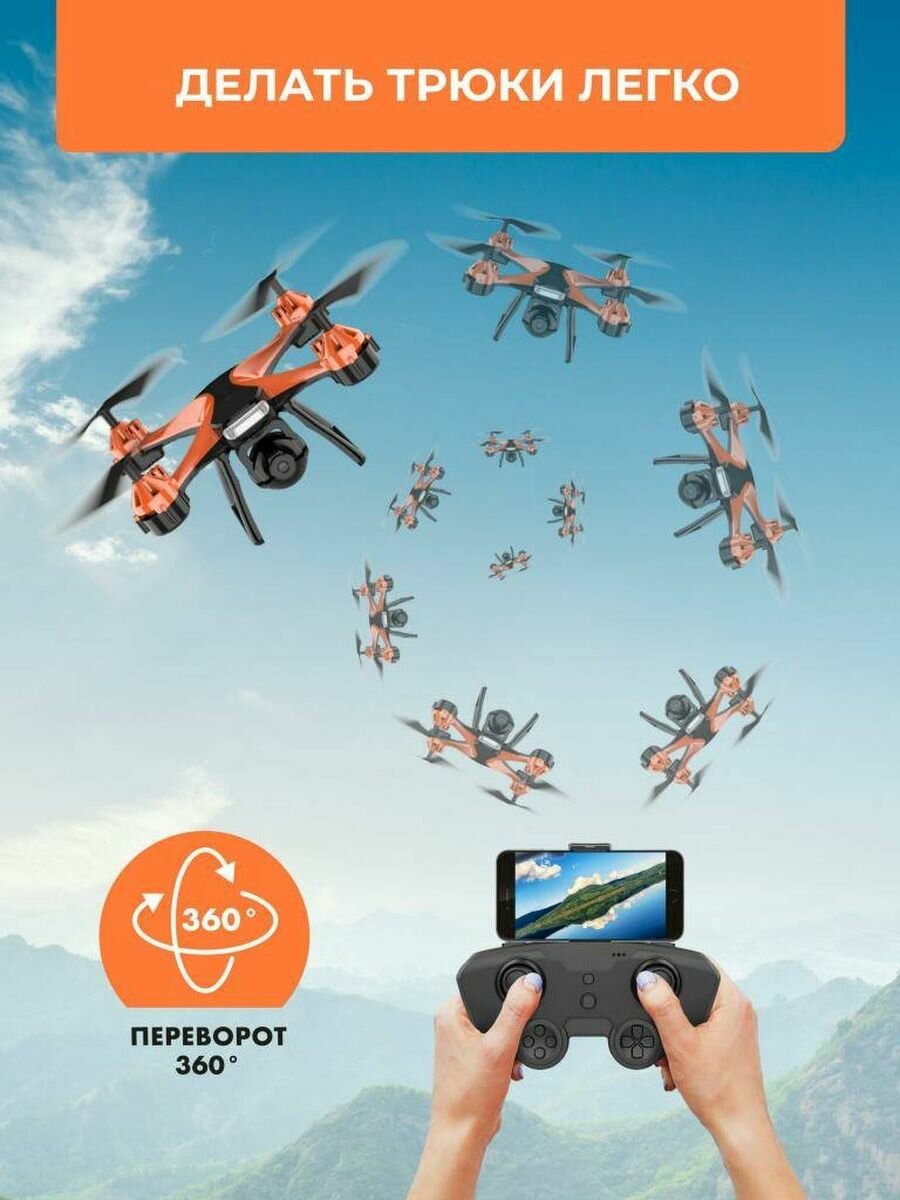 Квадрокоптер Hiper WIND FPV 480р WiFi ПДУ оранжевыйчерный
